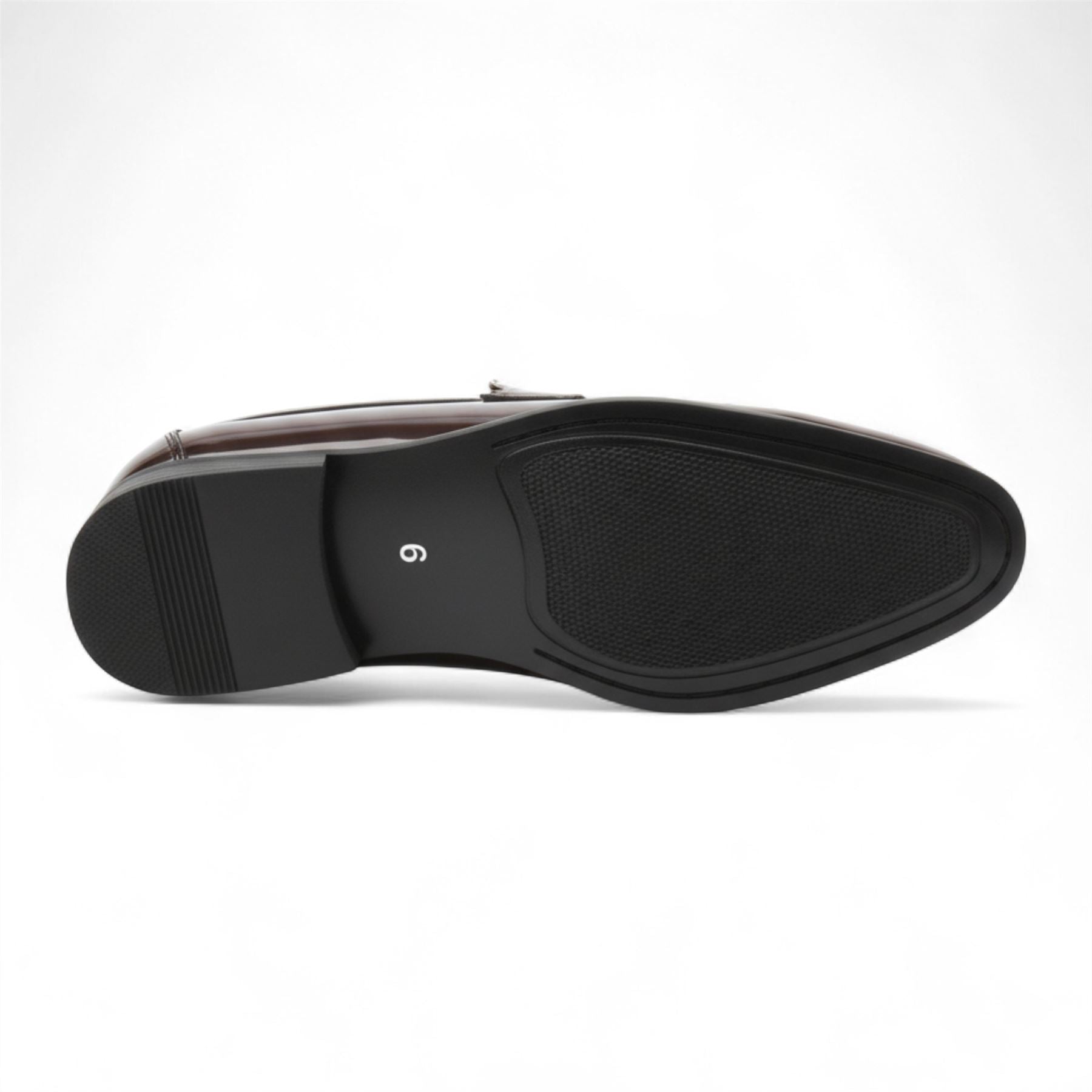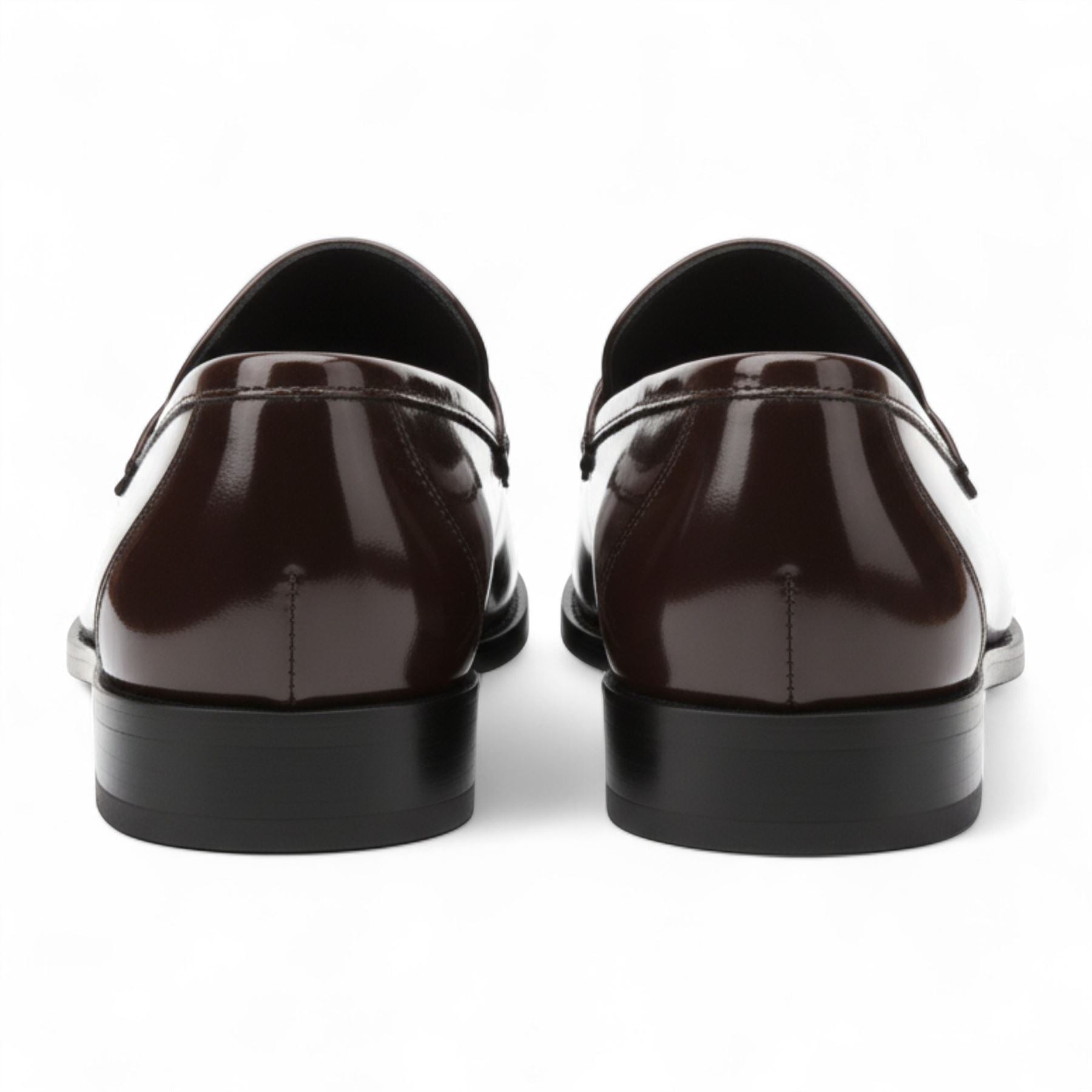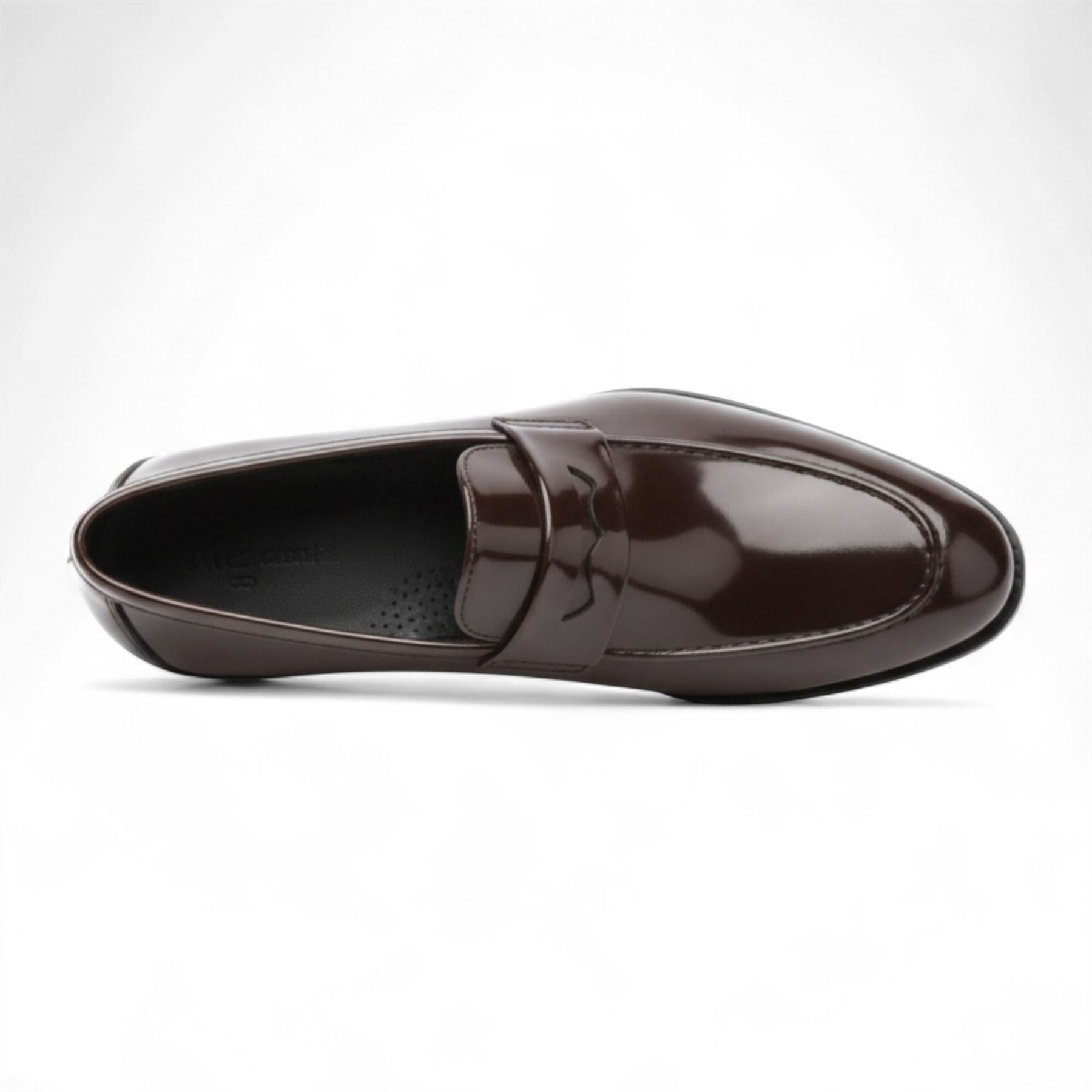 Mens Brown Patent Faux Leather Formal Penny Loafers