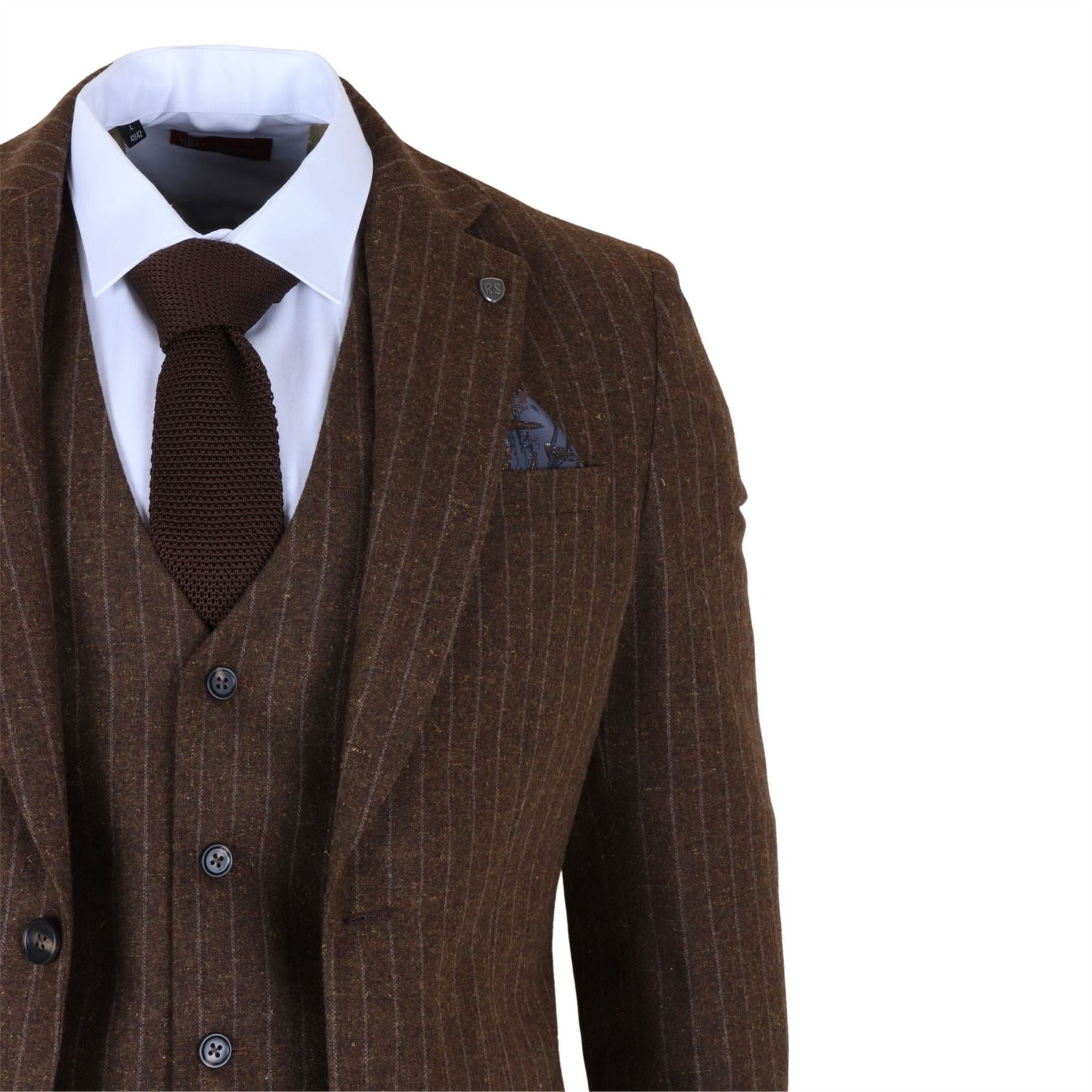 Make a sharp impression with this men’s brown pinstripe 3-piece suit, expertly tailored in a slim fit to create a sleek, modern silhouette. The subtle pinstripe pattern adds a classic yet distinguished edge, making it ideal for business meetings, formal events, and special occasions. This coordinated set includes a matching blazer, waistcoat, and trousers—all designed for a polished, professional finish. With practical flap pockets and timeless detailing, the blazer completes a look that blends smart tailoring with everyday versatility.