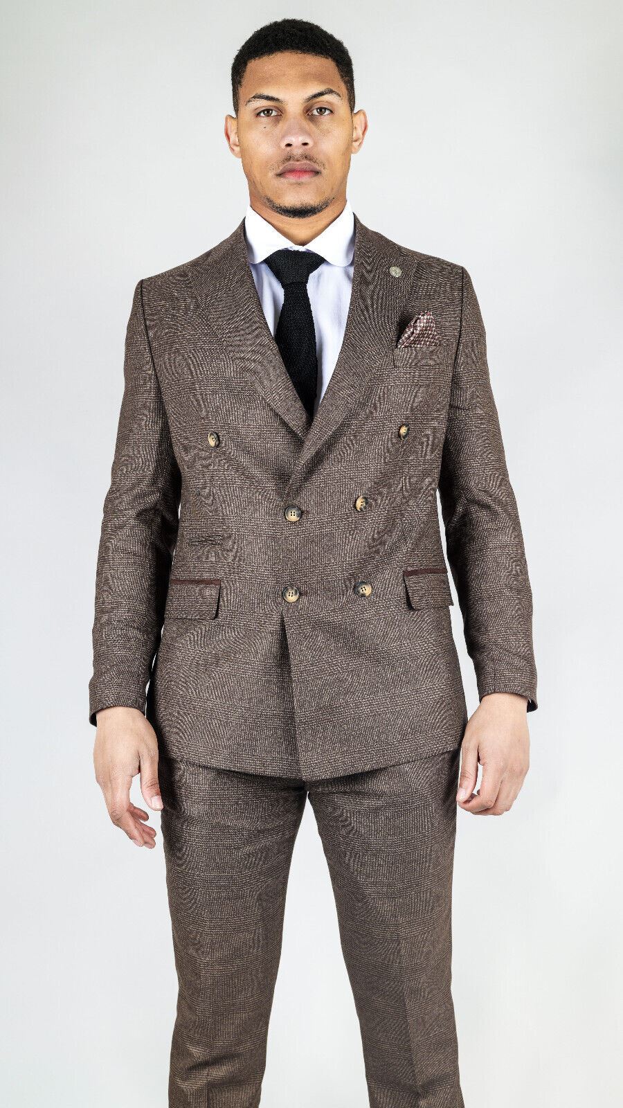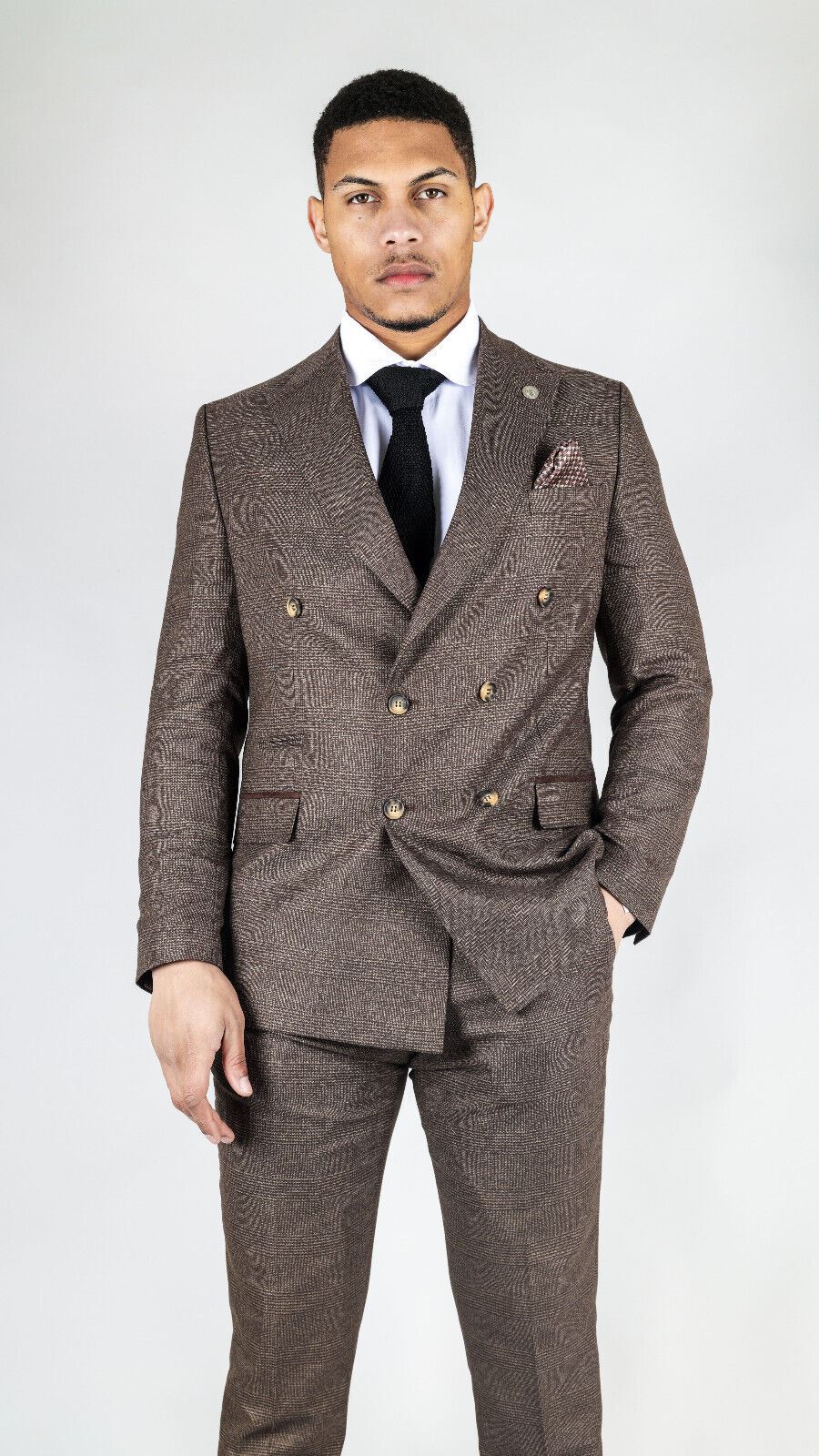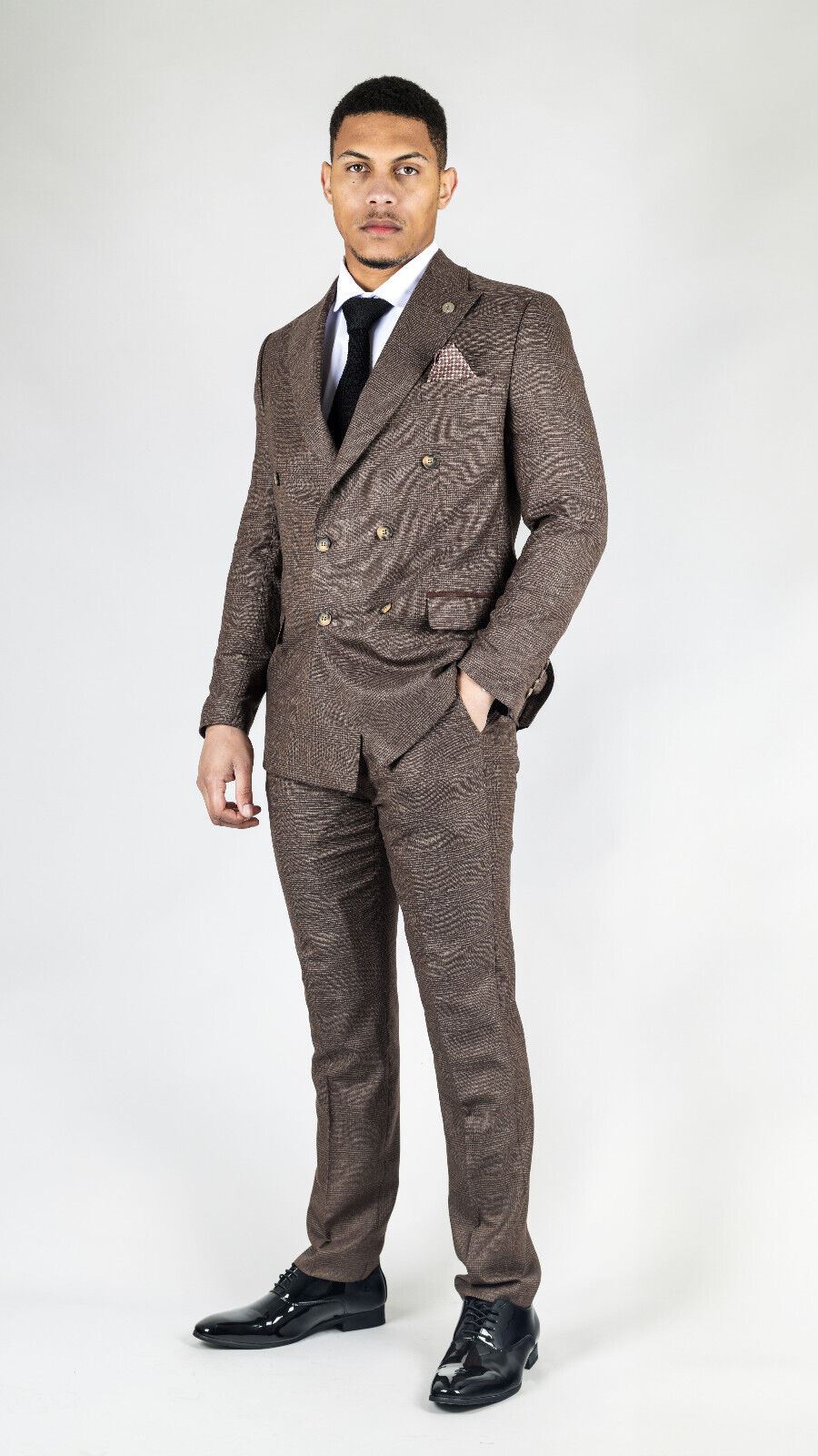 Elevate your formal attire with our Classic Double-Breasted Design men's brown suit, featuring a timeless double-breasted blazer for added sophistication and style.