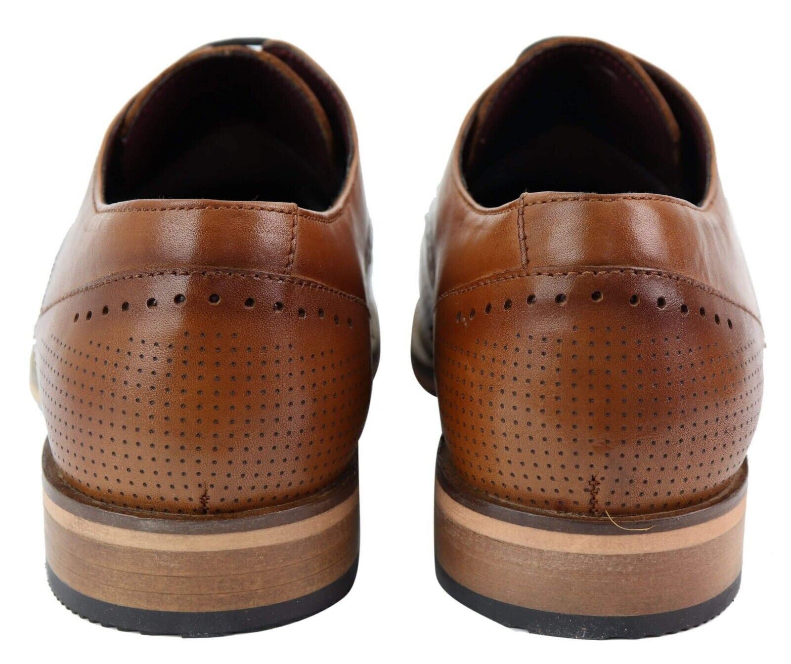 Mens Classic Oxford Brogue Shoes In Perforated Tan Leather