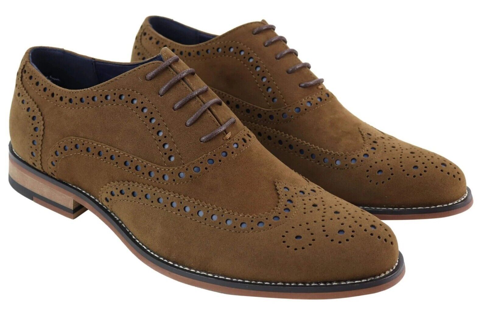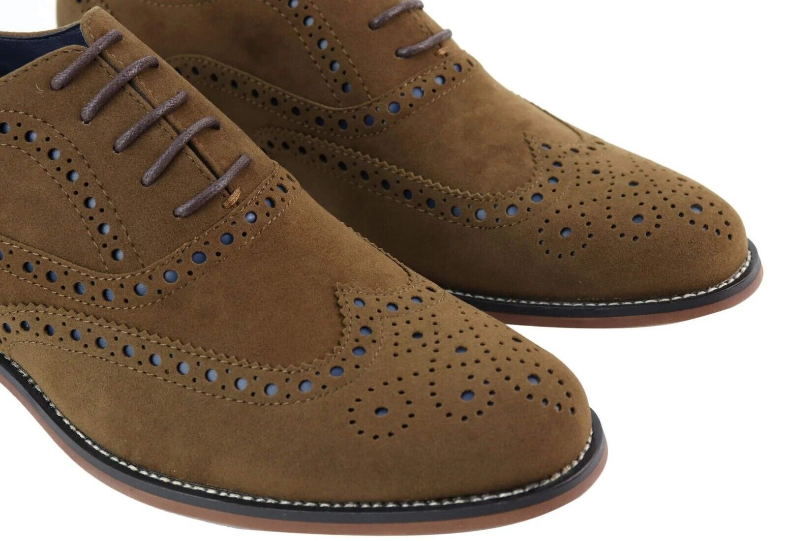 Mens Classic Oxford Brogue Shoes In Tan/Navy Suede