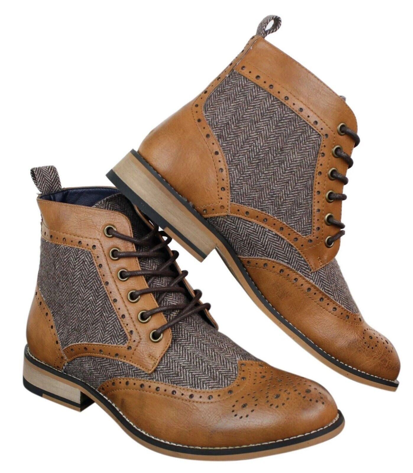 Mens Classic Tweed Oxford Ankle Boots In Tan Leather