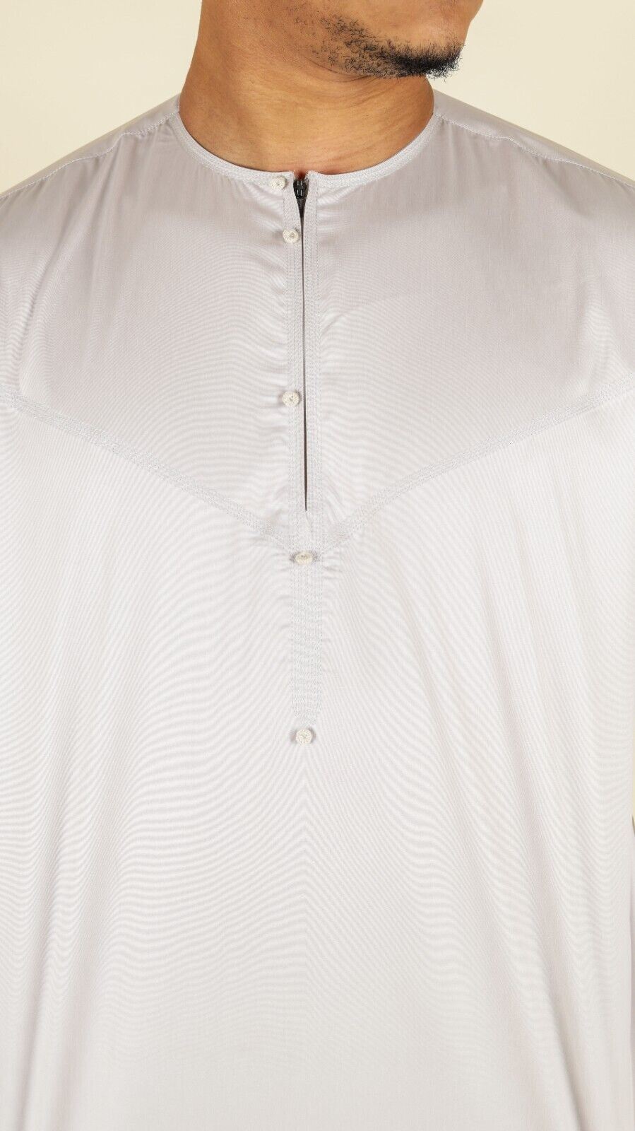 Men's Cream Beige Thobe Robe Satin Emirati Islamic Jubba Eid Regular Fit