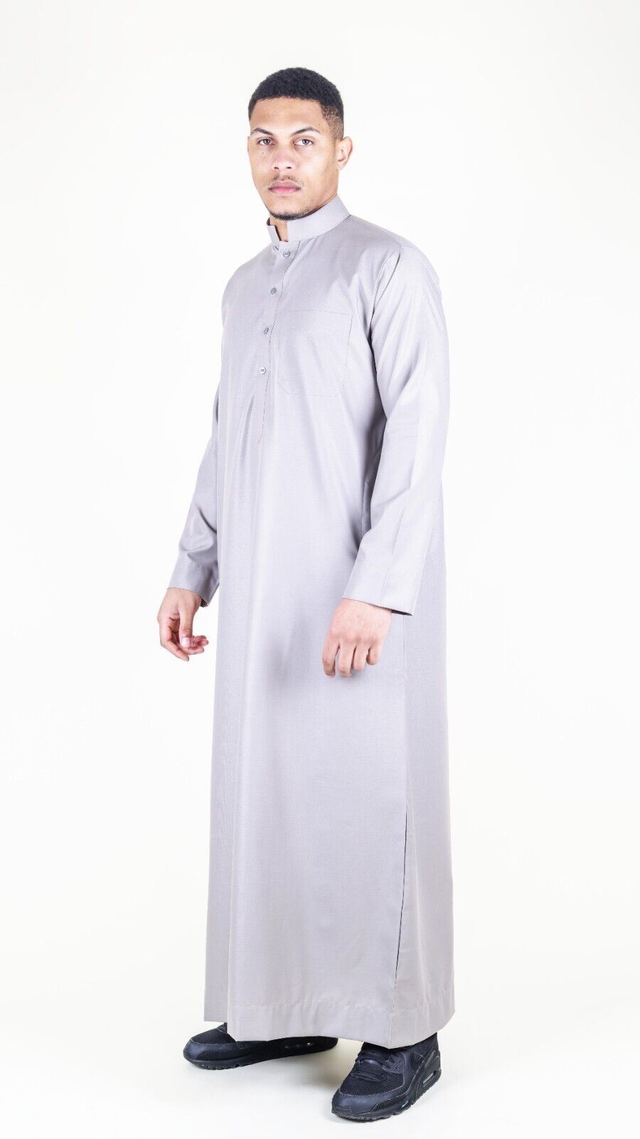 Mens Cream Thobe Jubba Saudi Islamic Arabic Eid Cotton Kaftan Jubbah Umrah Robe