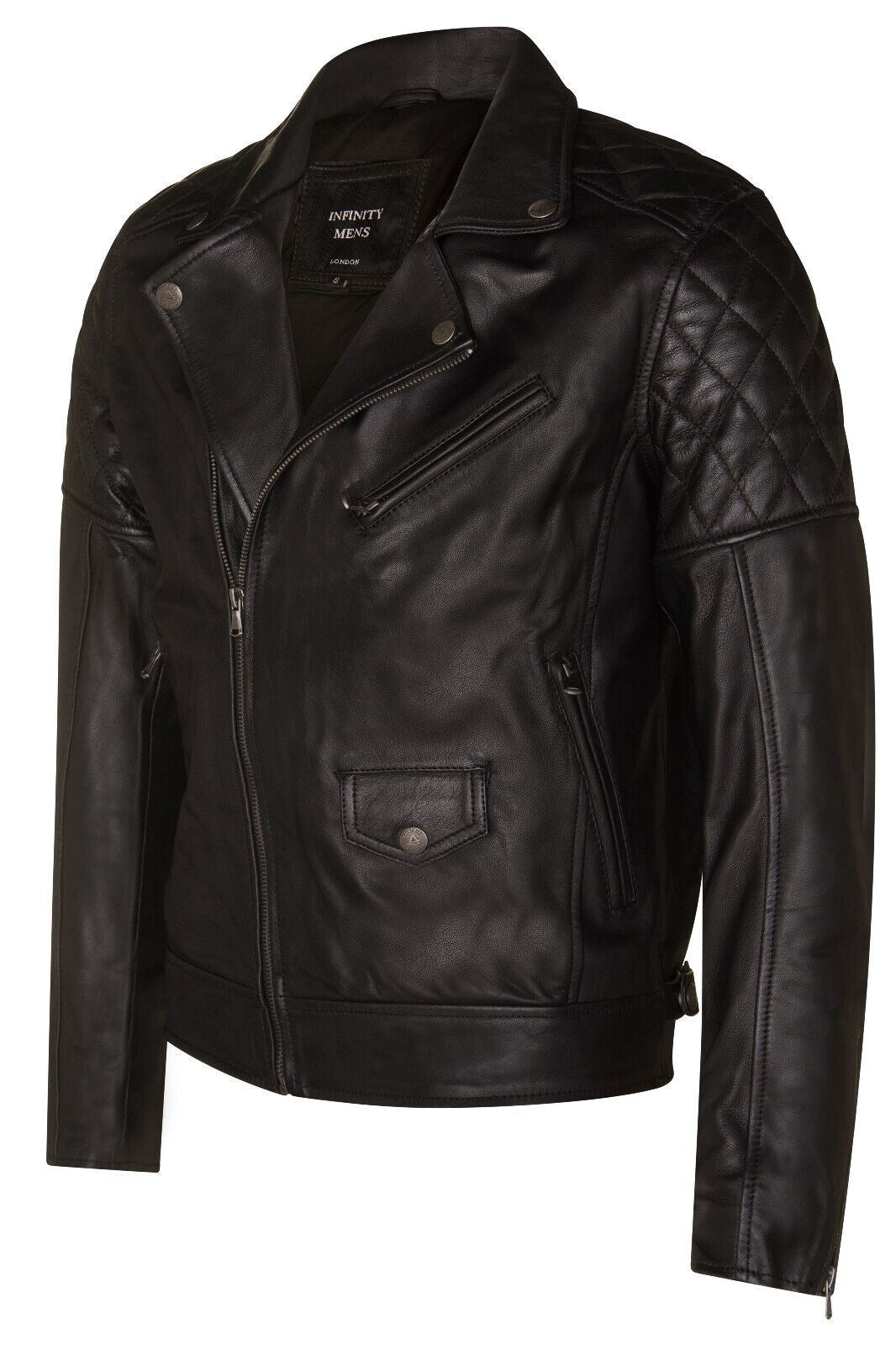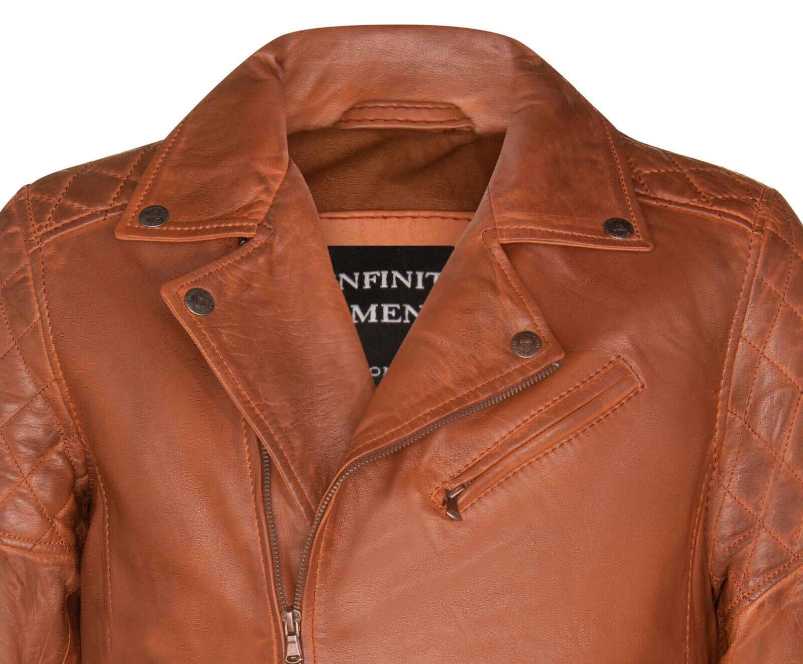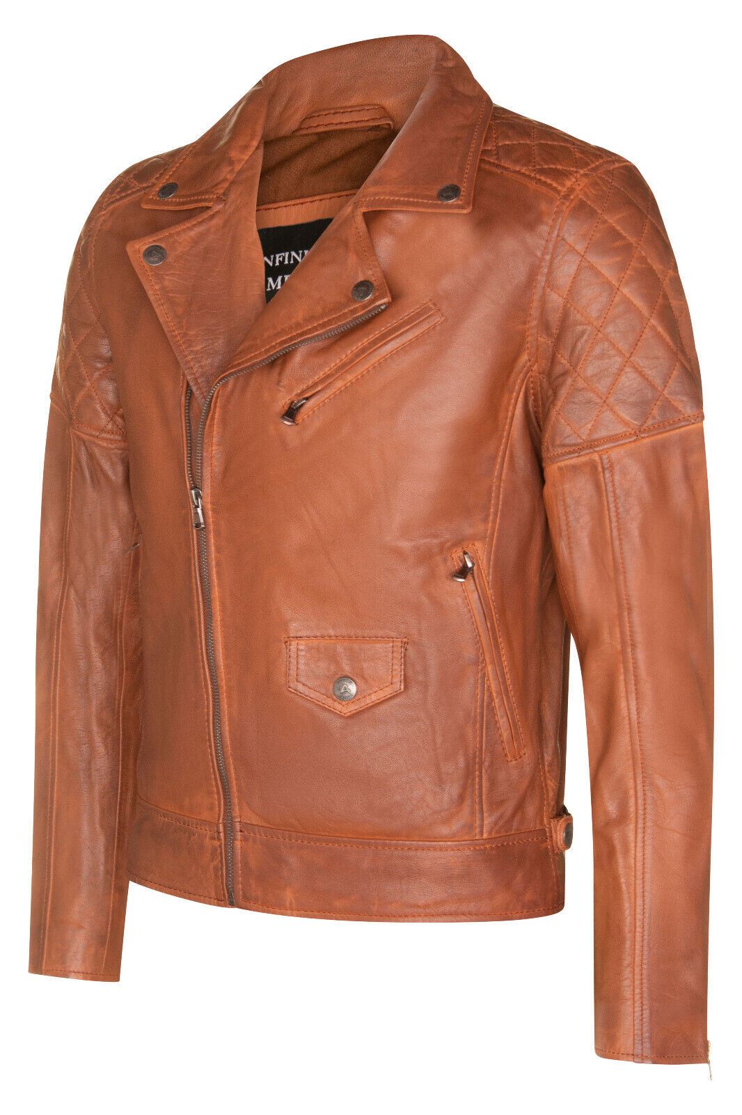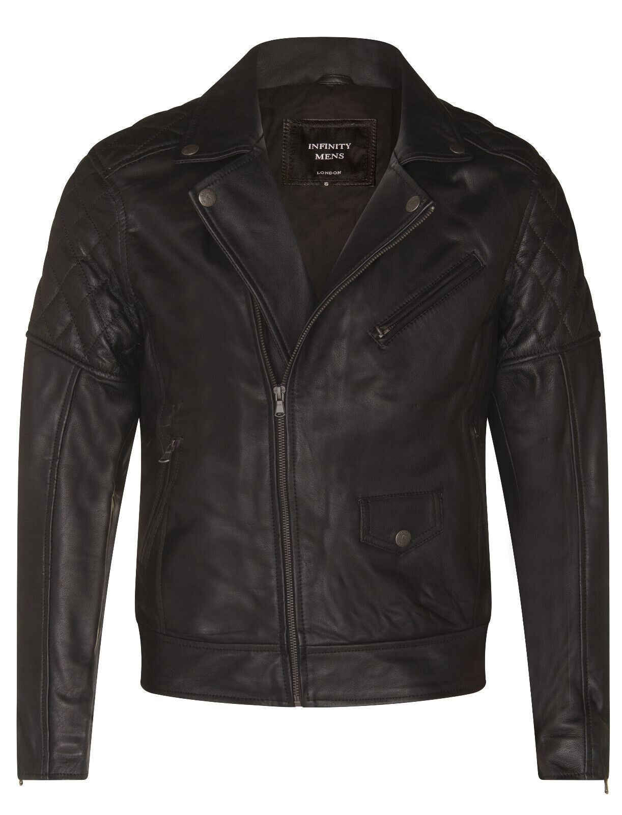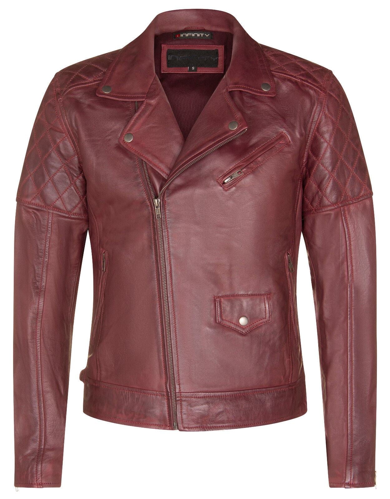 Mens Cross Zip Leather Biker Jacket - Gibraltar