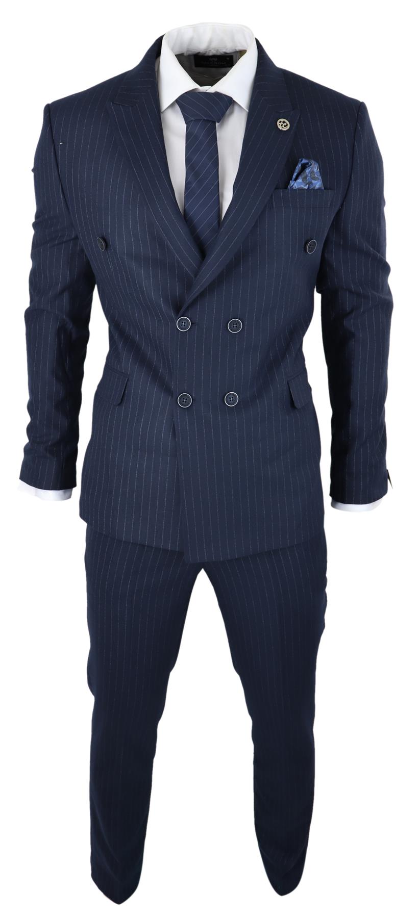 Sharp, sleek and sophisticated, look the part with this premium 3 piece Navy Blue suit, that features a slim fit cut, with a closer fit across the chest and narrower tailored trousers. the double breasted jacket hangs beautifully and has a half canvas construction that moulds to your body shape the more you wear it. Flap pockets, buttoned cuffs and a double back vent lend the suit a classic touch of refinement.