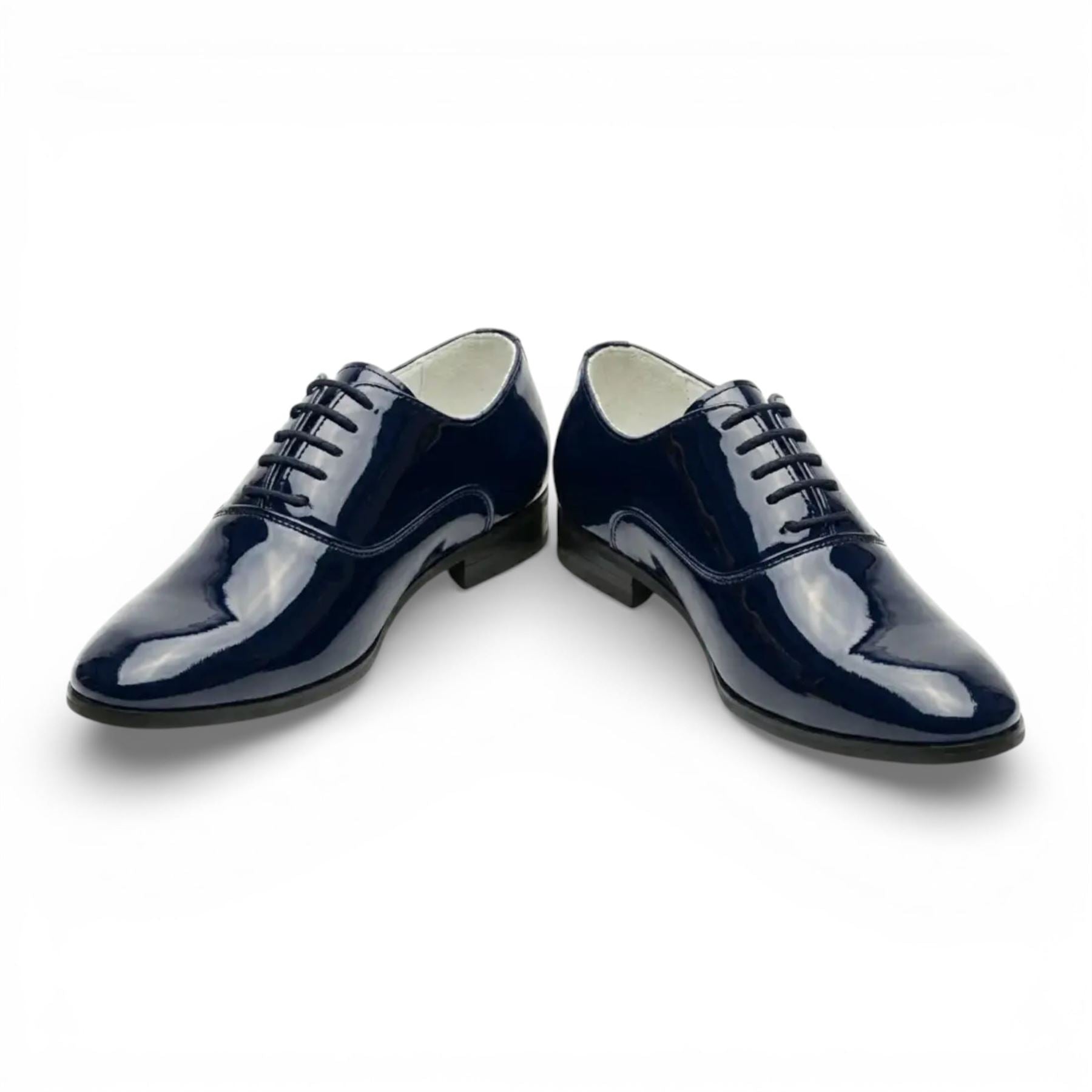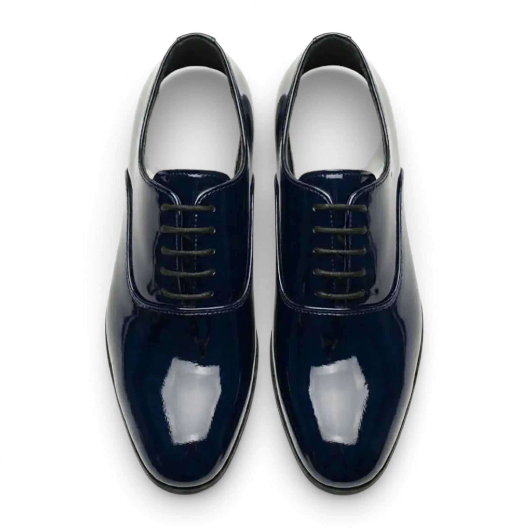 Men's Formal Navy Blue Patent PU Leather Oxford Dress Brogue Shoes