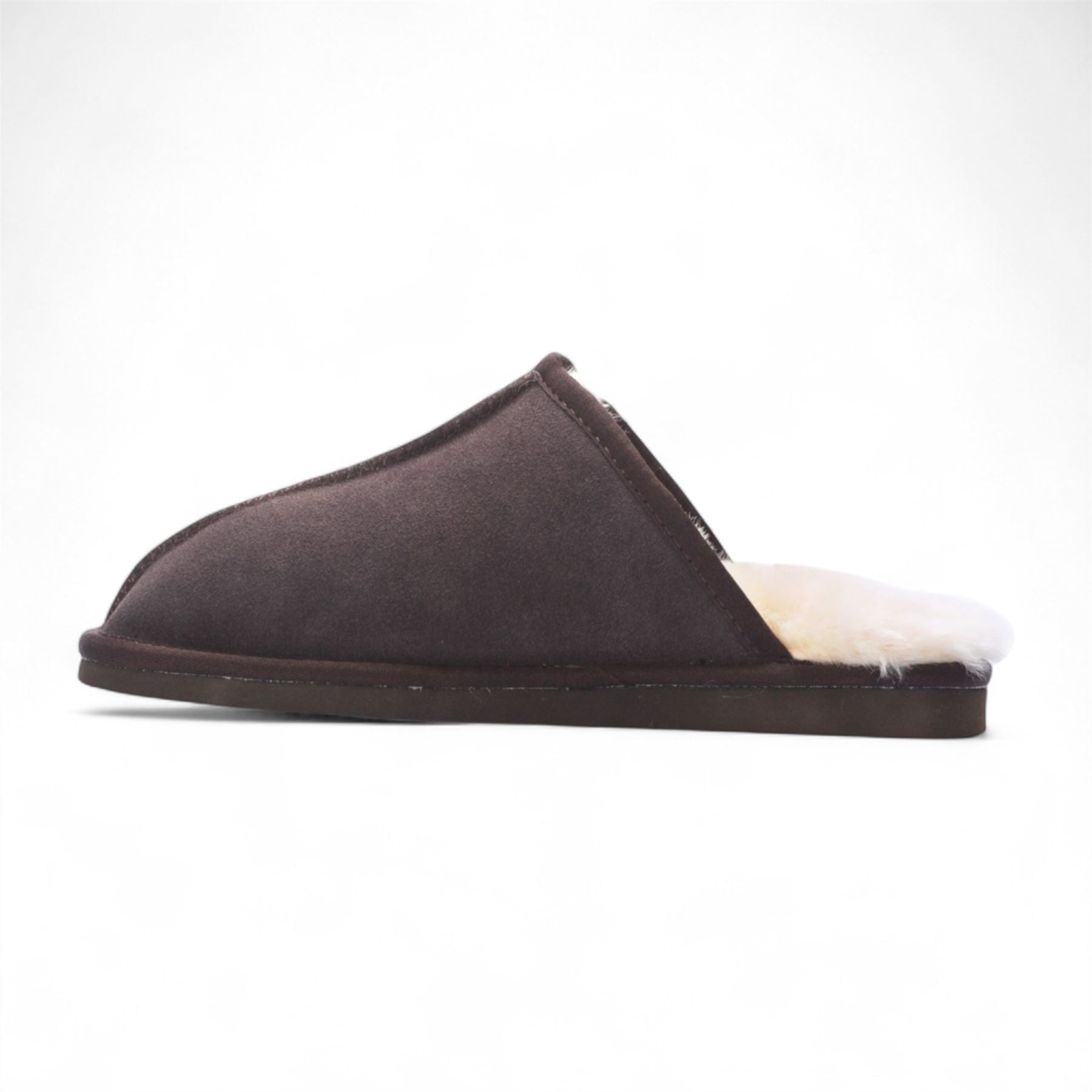 Men's Genuine Sheepskin Brown Suede Mule Winter Warm Non-Slip - Highland