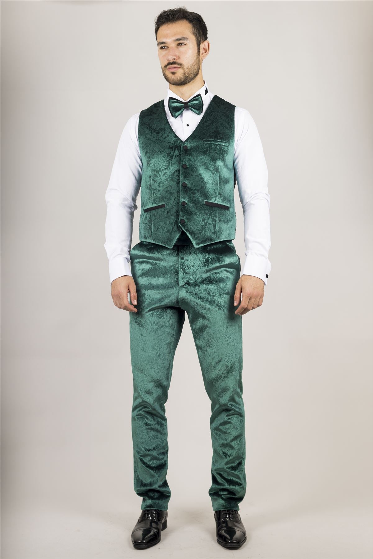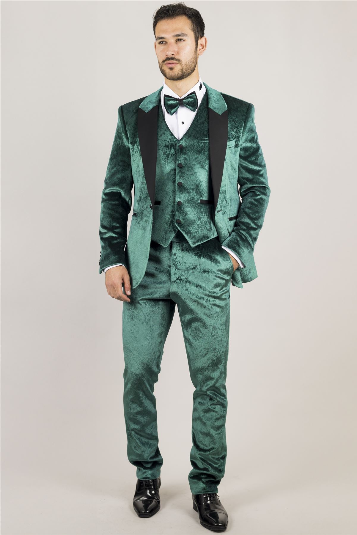 Men's Green 3 Piece Velvet Wedding Tuxedo Formal Suit