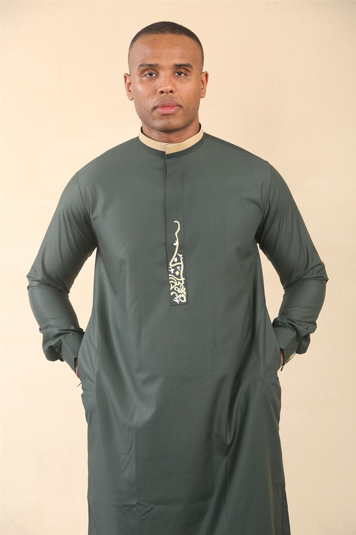 Elevate your wardrobe with this exquisitely designed men's thobe, crafted for both elegance and comfort. Made from premium-quality fabric with intricate gold embroidery, this thobe seamlessly blends traditional Islamic aesthetics with modern sophistication, making it a perfect choice for various occasions.