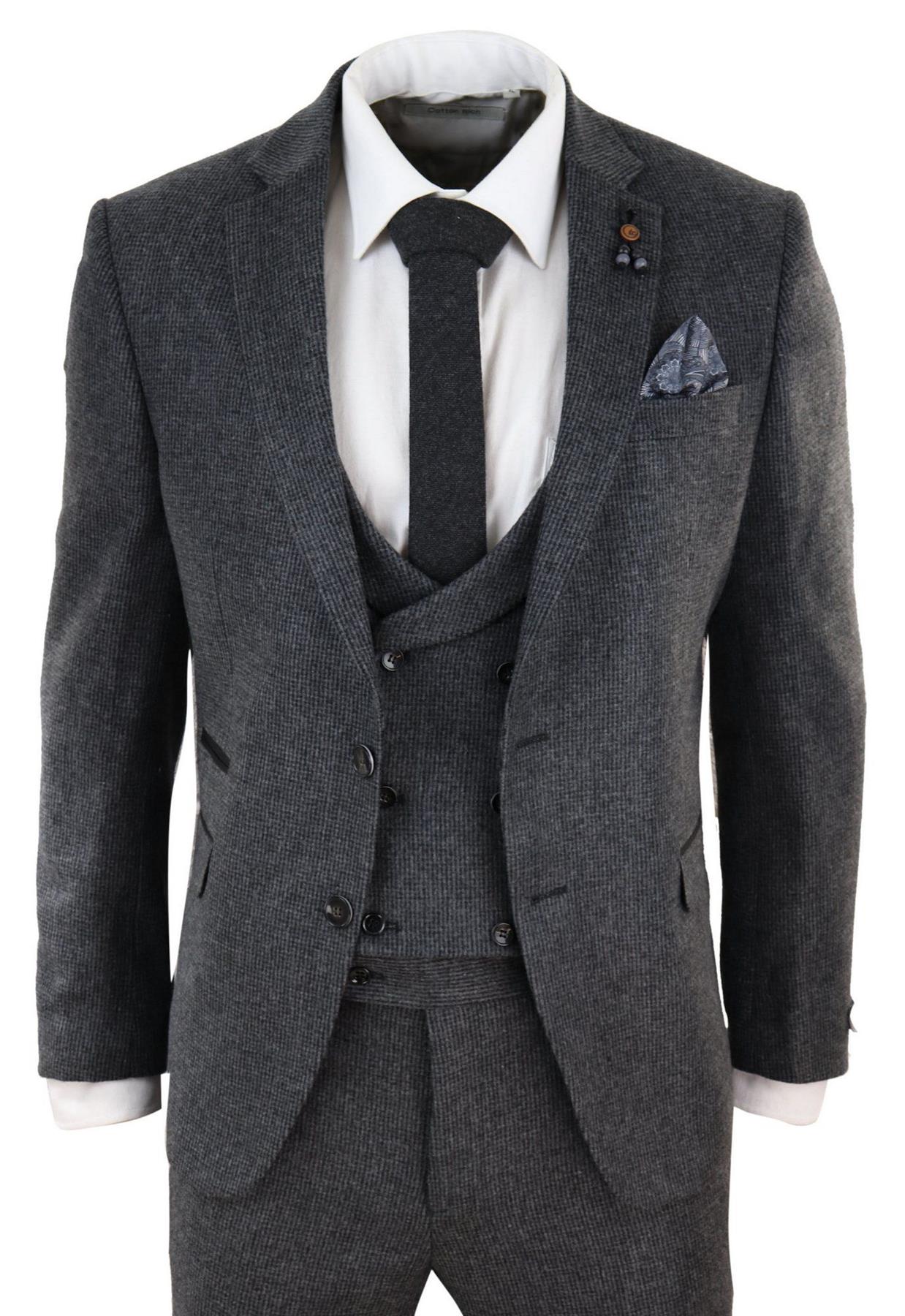 Mens Grey 3 Piece Tweed Suit Vintage Harringbone 1920s Retro Peaky Blinders