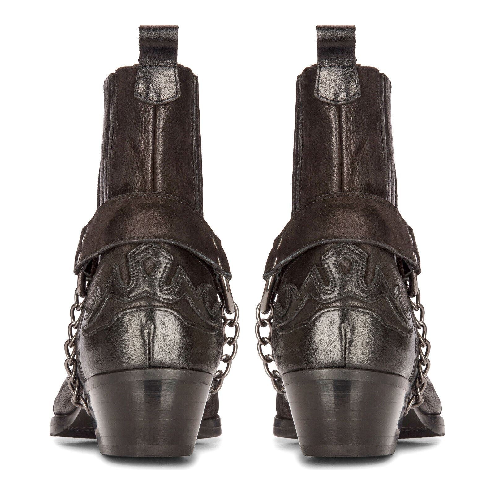 Mens Leather Cowboy Ankle Boots Black Brown Cuban Biker Winklepicker Western