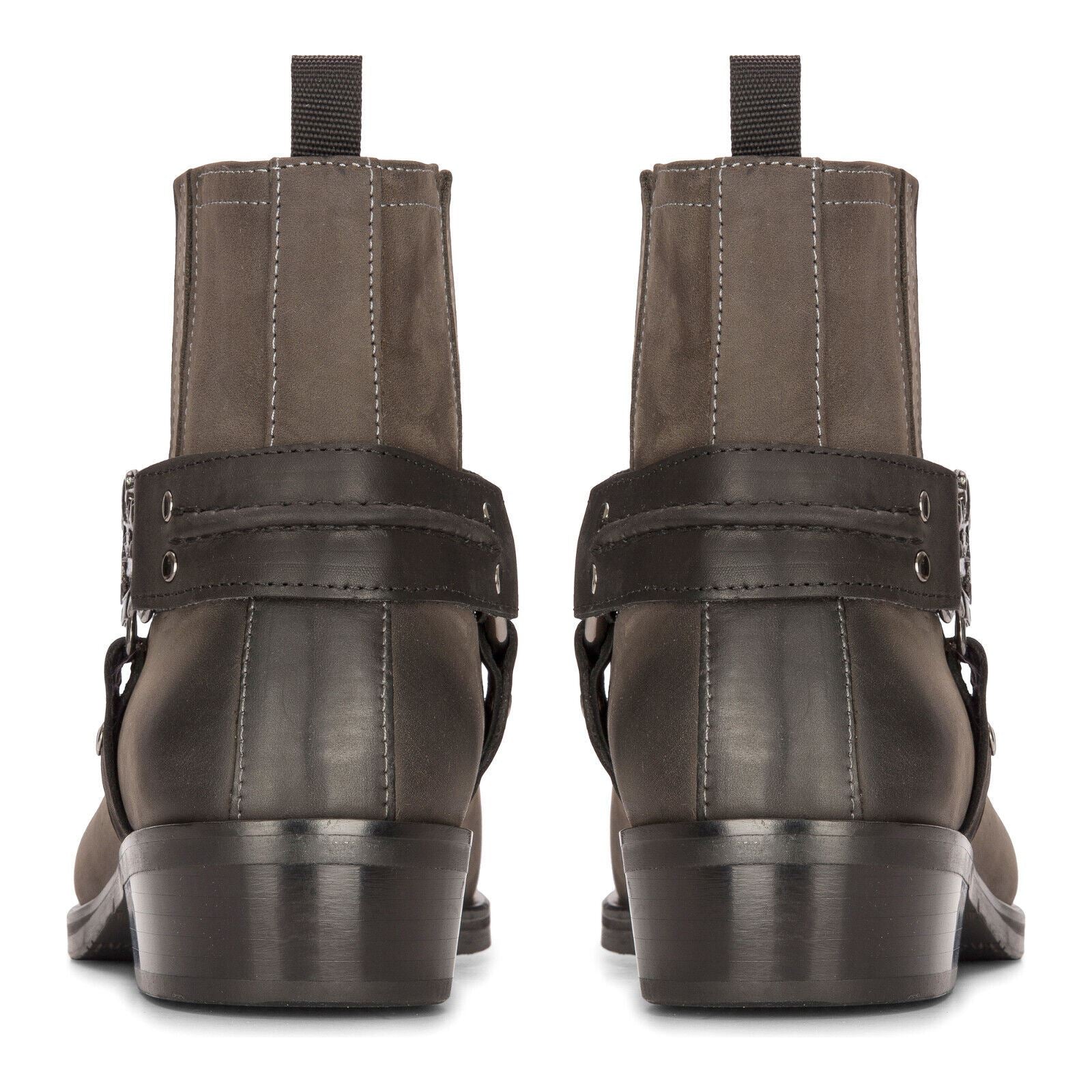 Mens Leather Cowboy Ankle Boots Brown Biker Western Square Toe Hunting Boot
