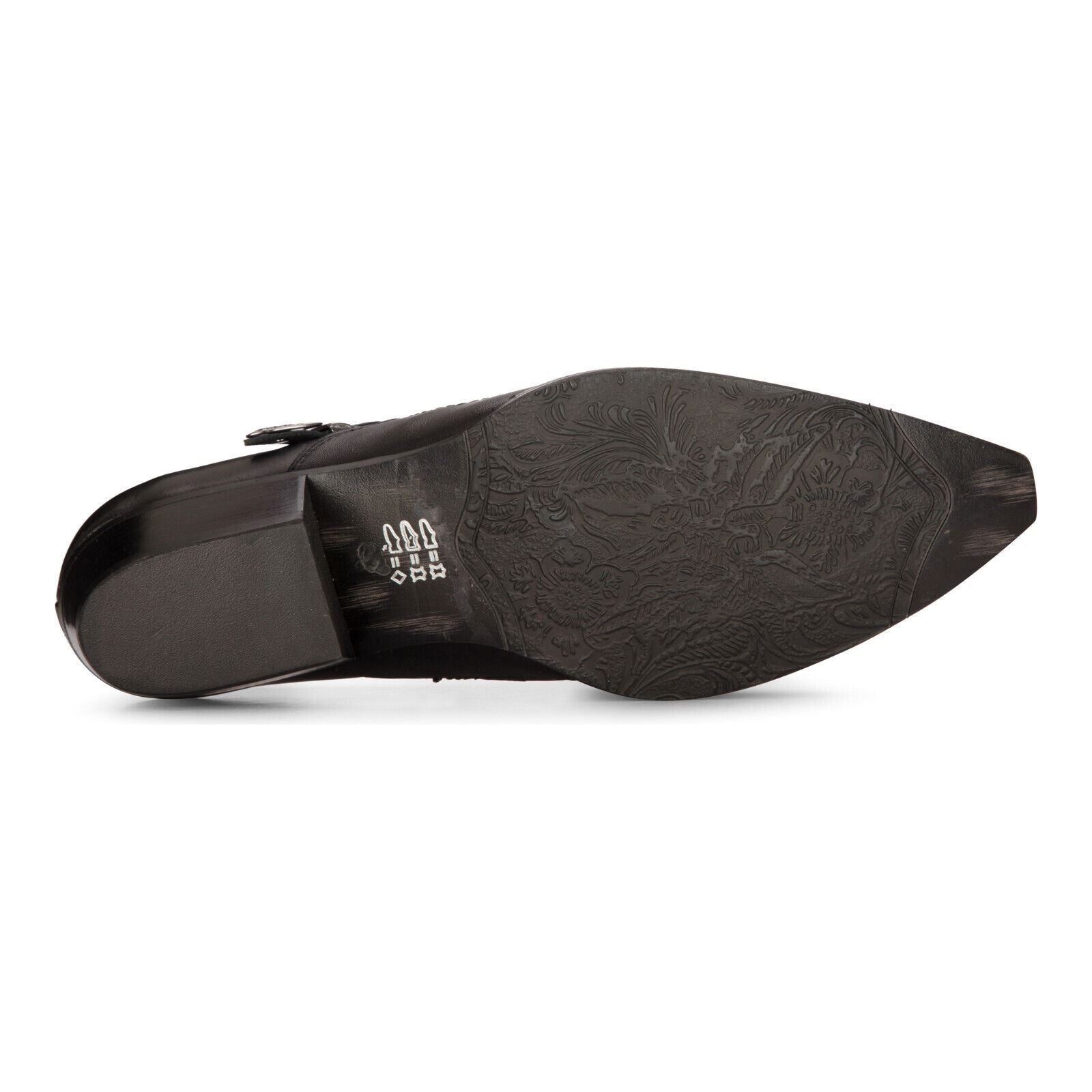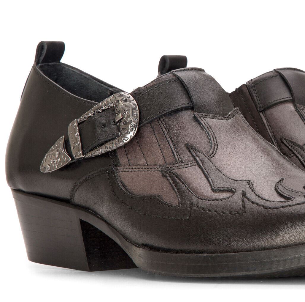 Men's Leather Western Shoes Black Cuban Cowboy Winklepickers Classic Buckle Shoe