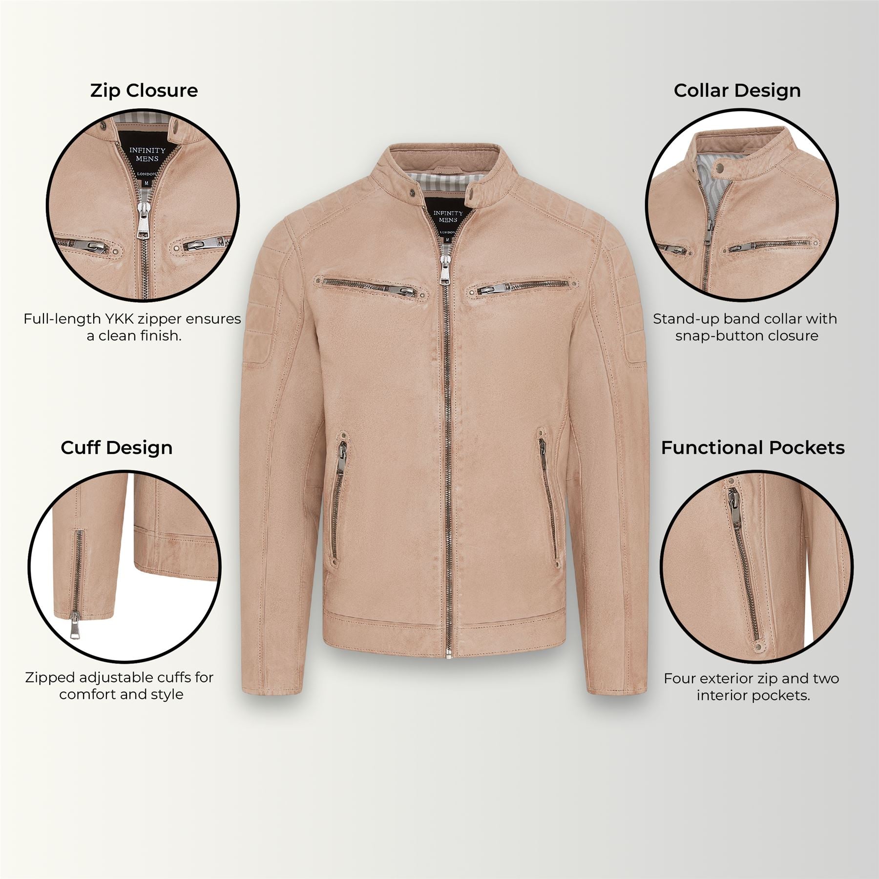 Men's Modern Classic Leather Quilted Biker Jacket - Derry