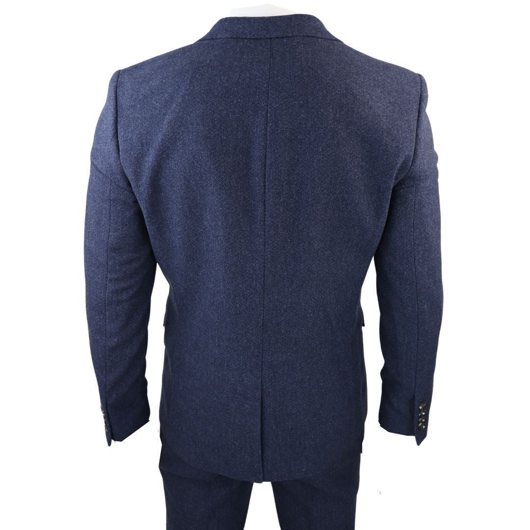 Men's Navy Blue Tweed 3 Piece Wool Suit