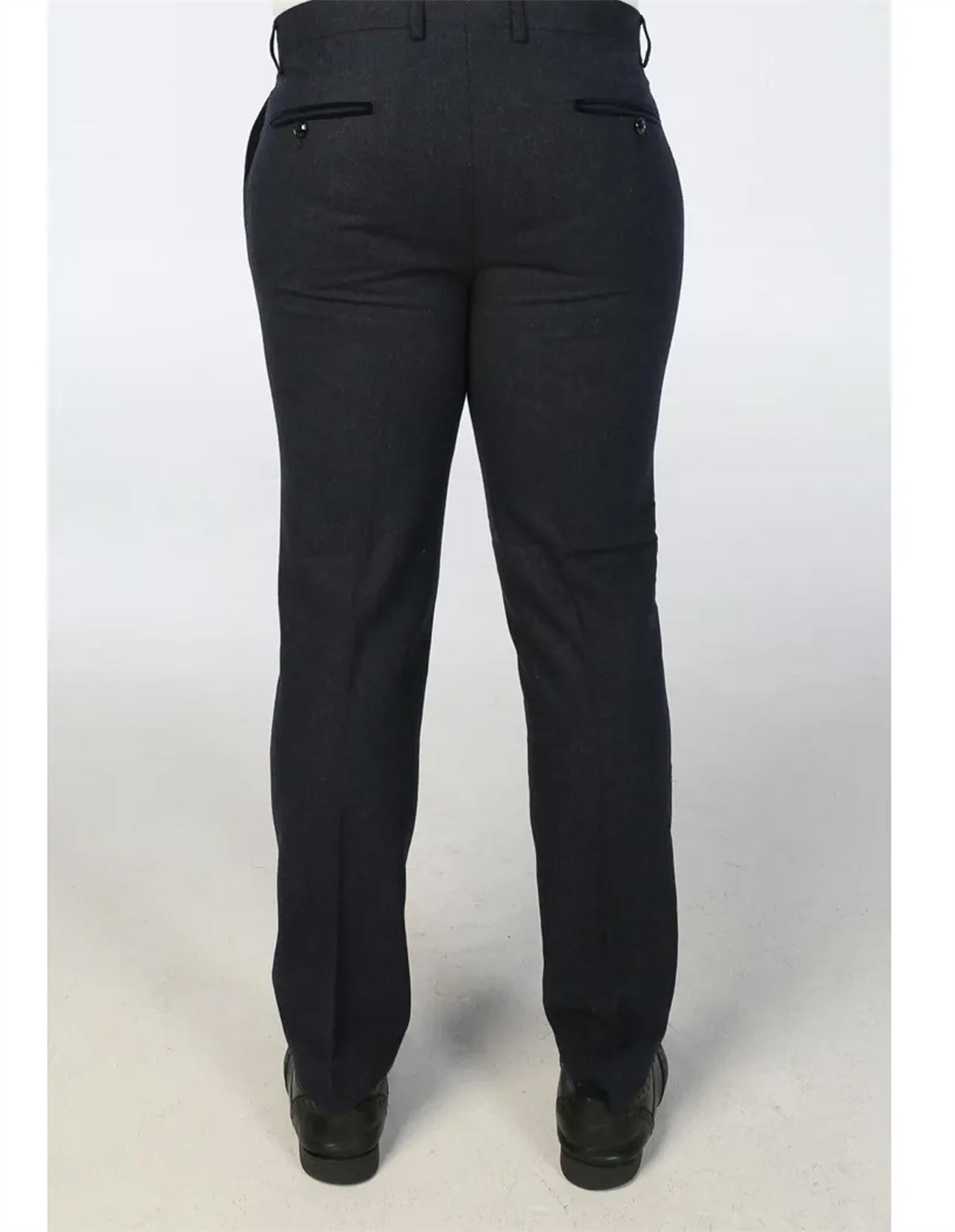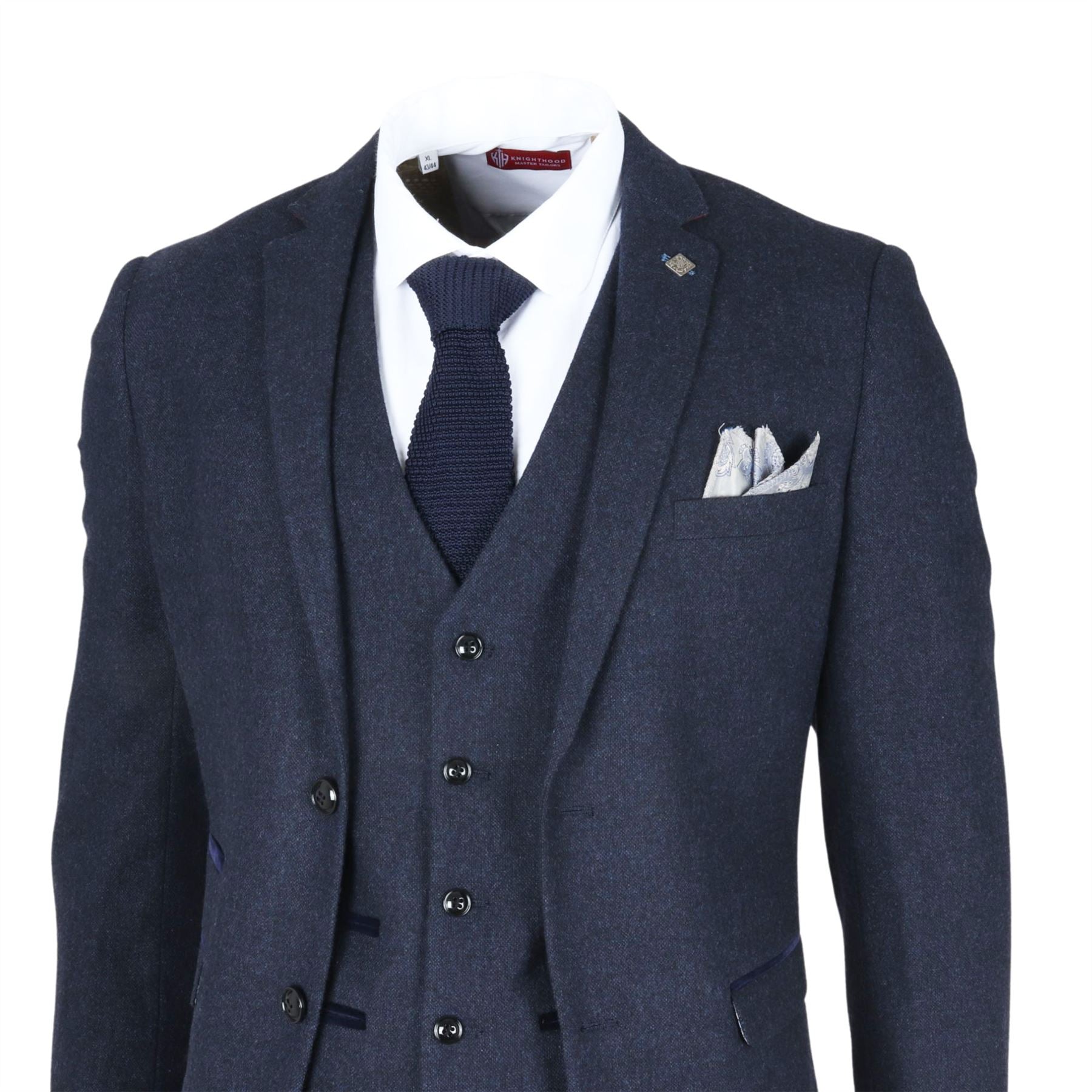Men's Navy Blue Wool Blend Tweed 3 Piece Formal Suit