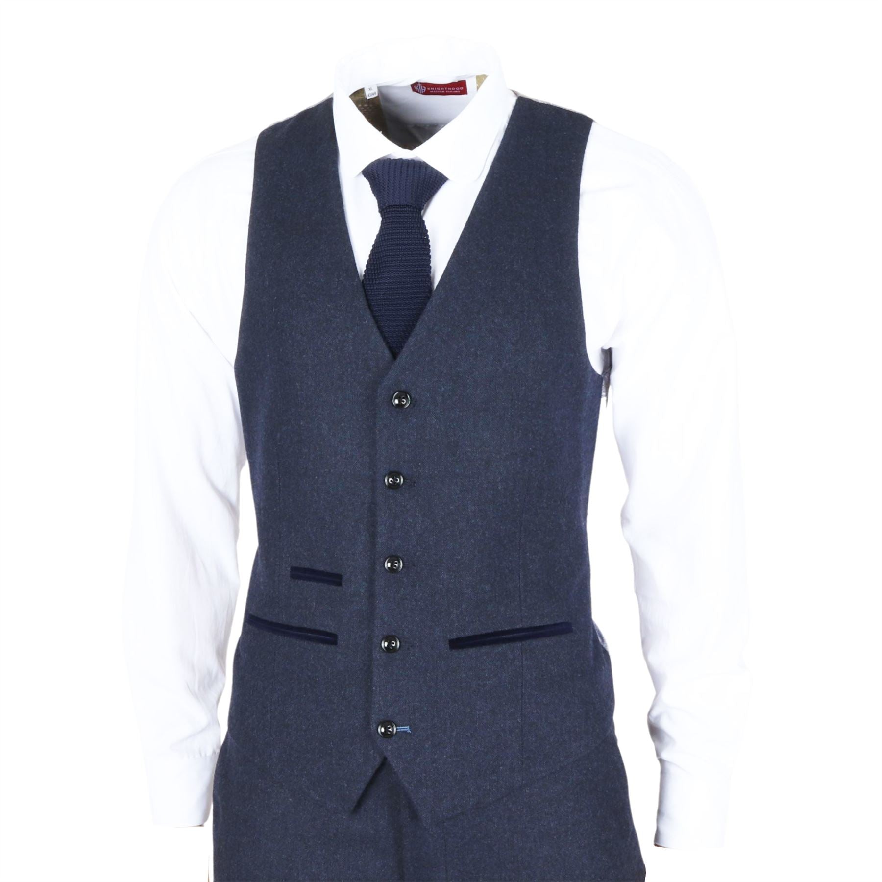 Men's Navy Blue Wool Blend Tweed Formal Waistcoats