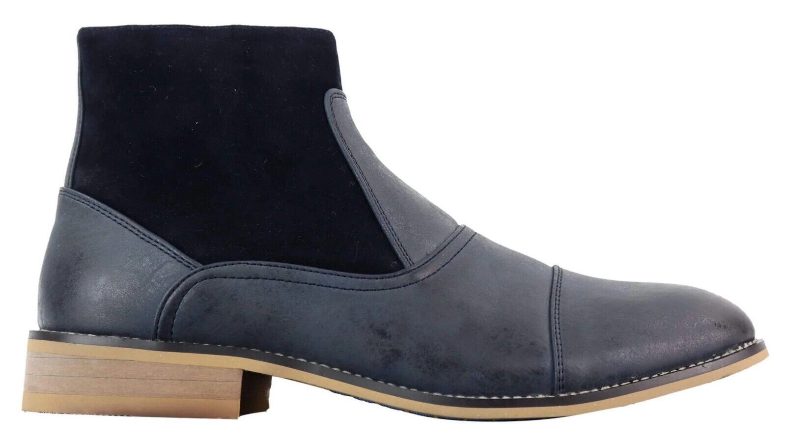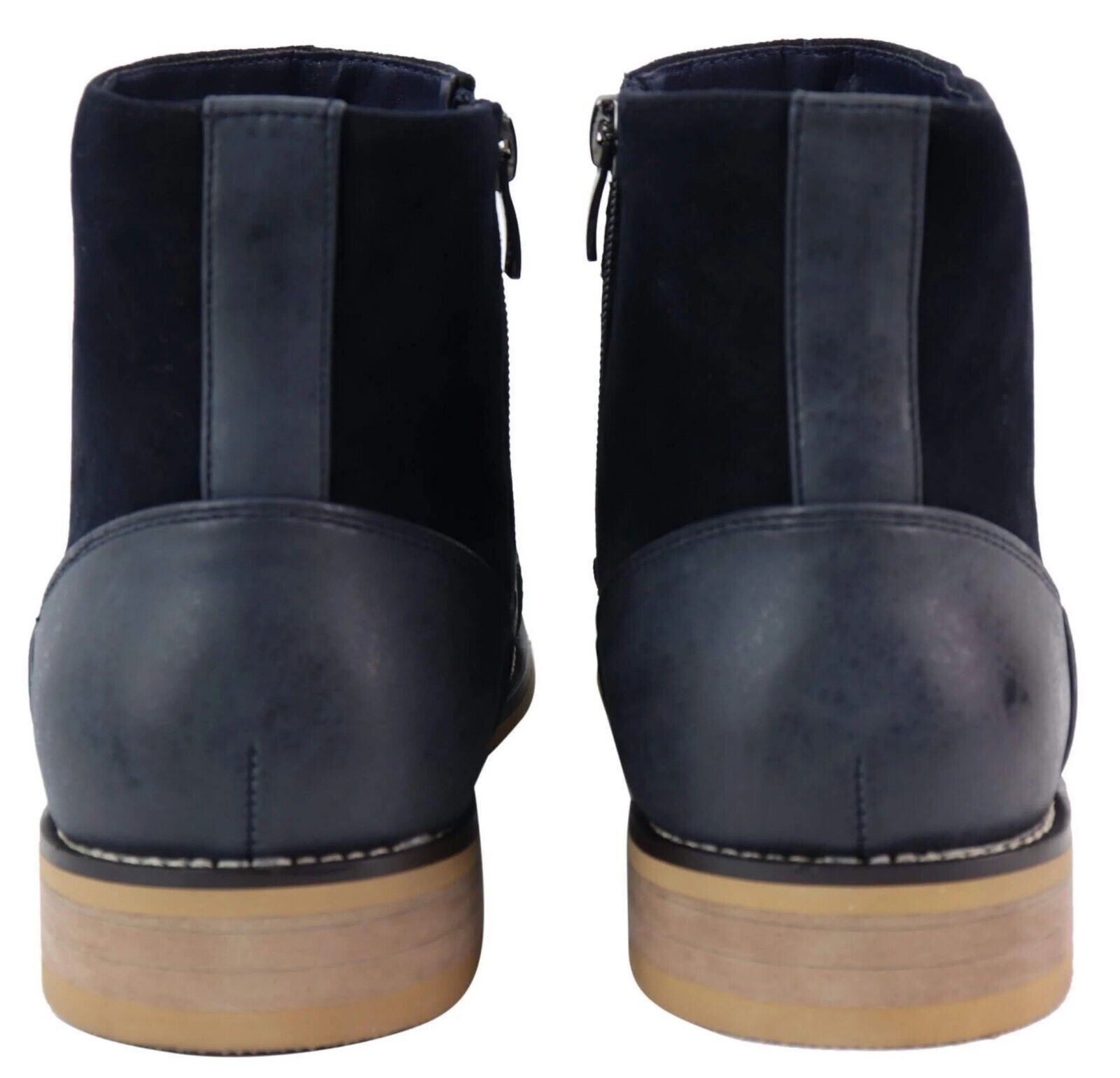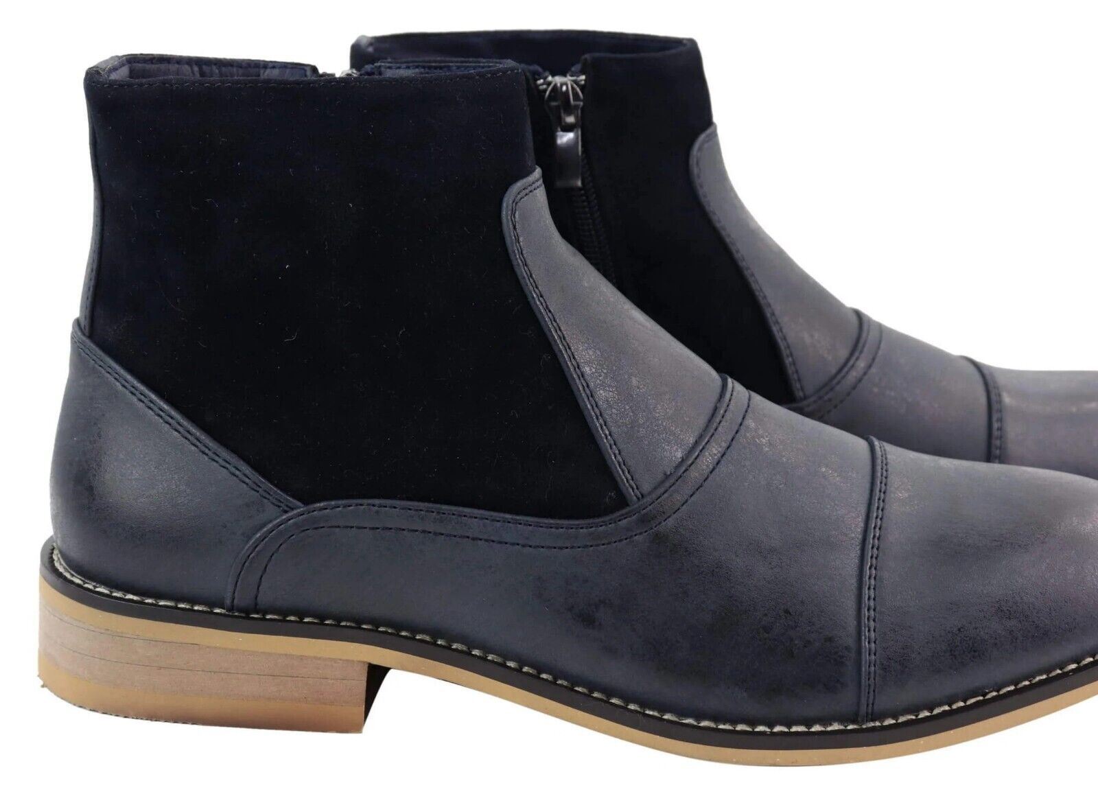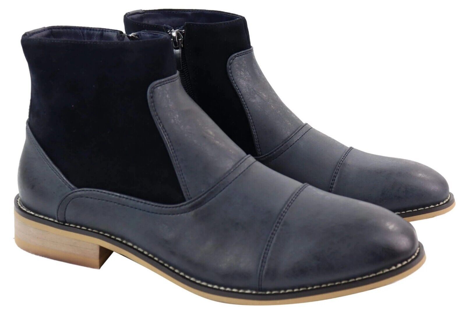 Mens Navy Leather Suede Zip Up Chelsea Boots
