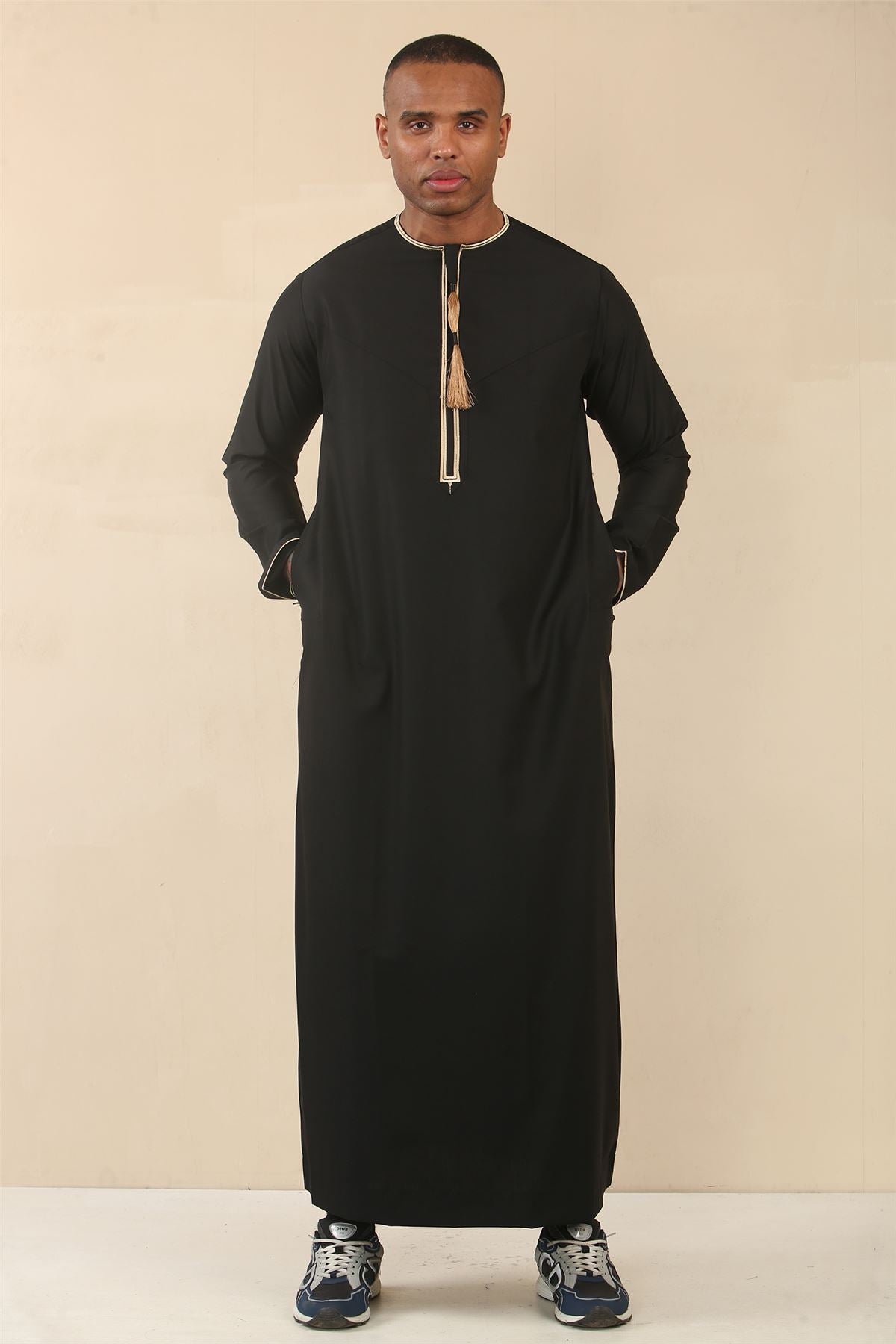 Men's Omani Eid Black Thobe Saudi Emirati Jubba Robe