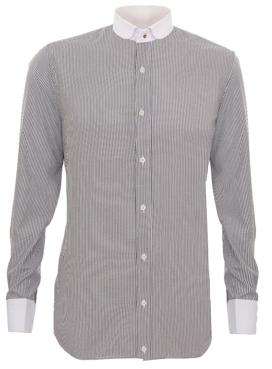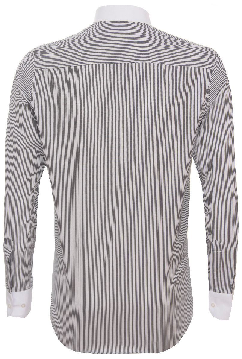 Mens Peaky Blinders Removable Collar Nehru Black Striped Collarless Shirt