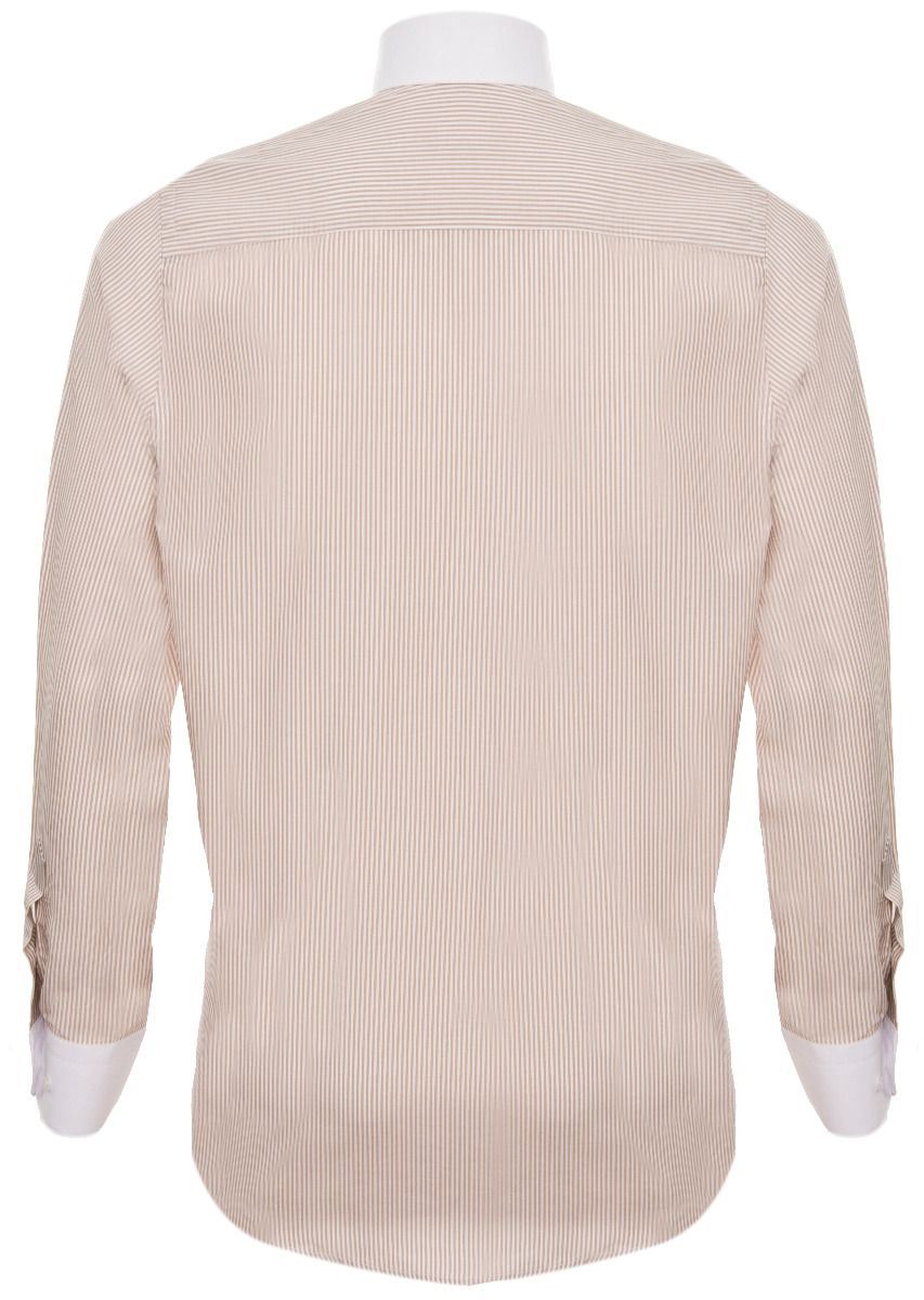 Mens Peaky Blinders Removable Collar Nehru Coffee Striped Collarless Shirt