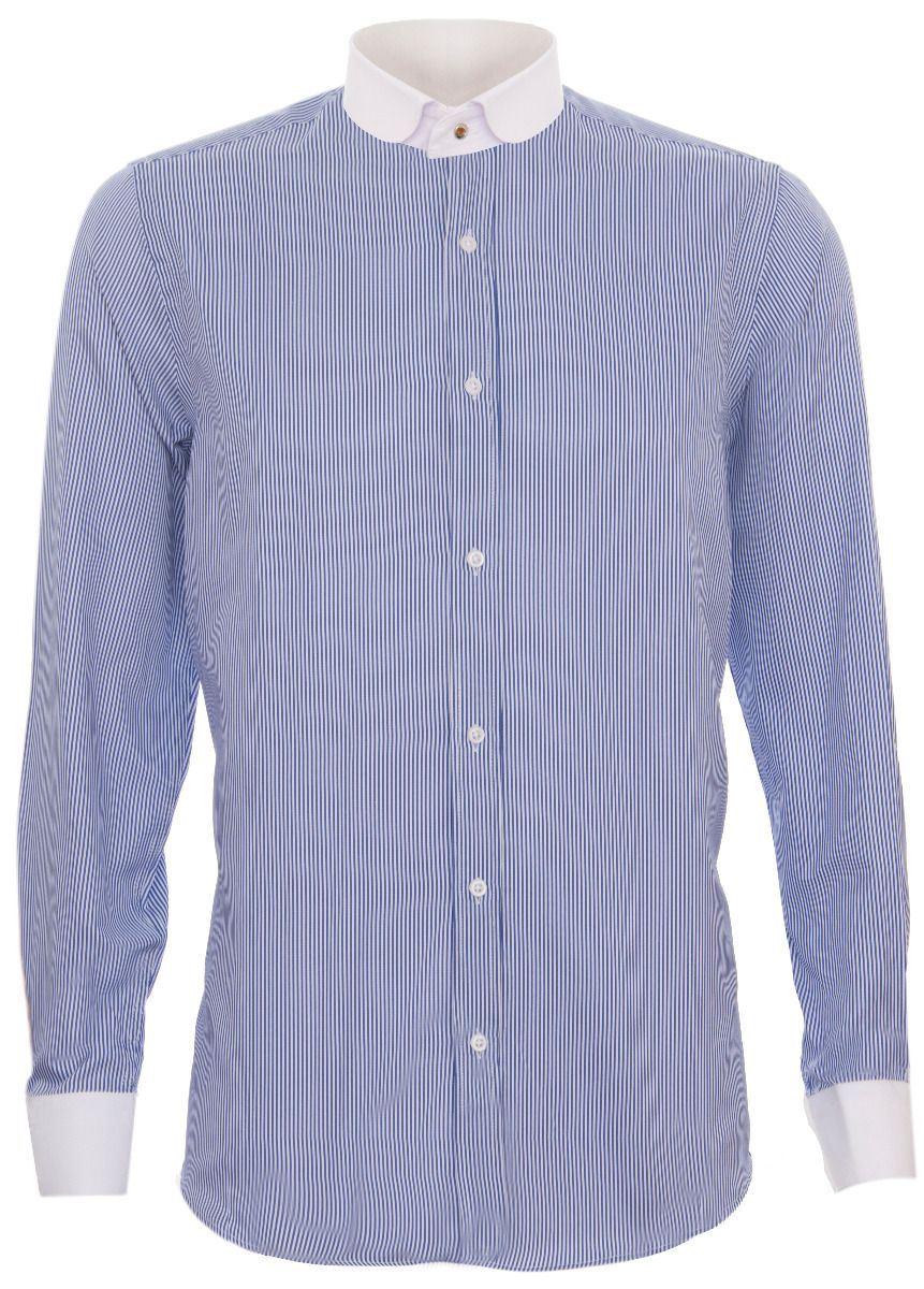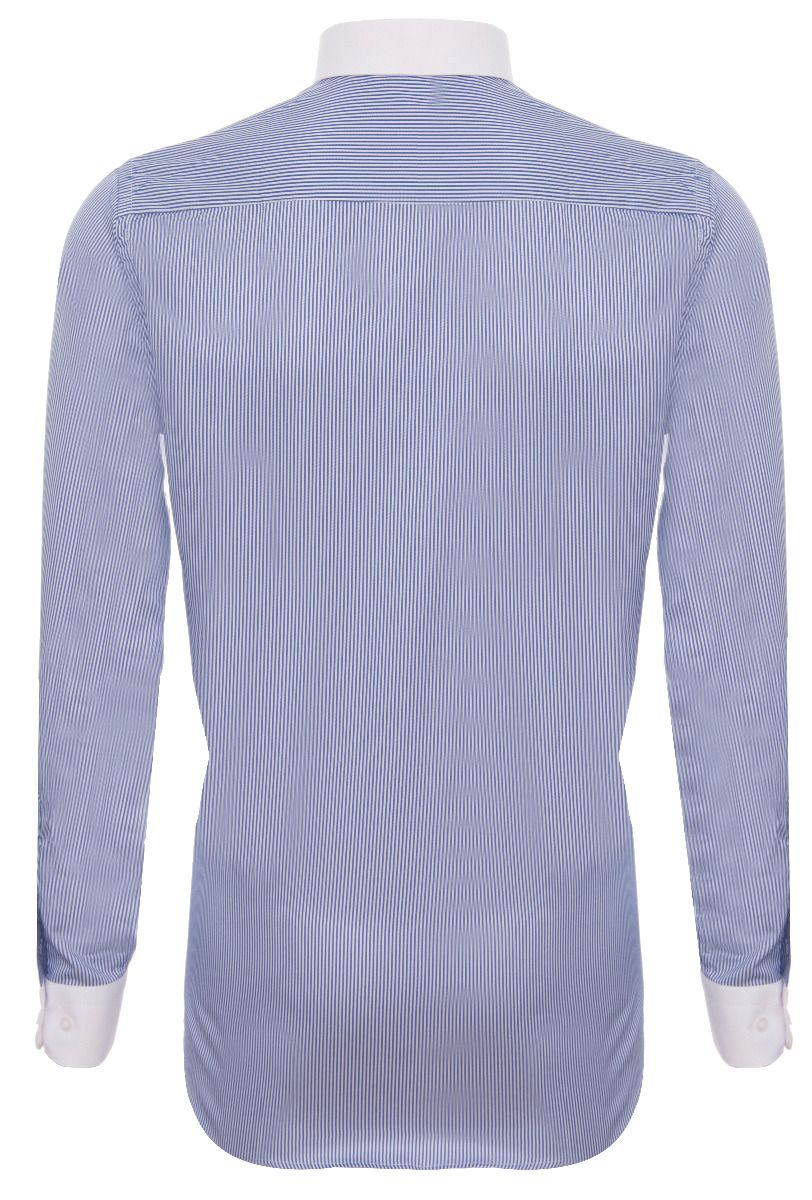 Mens Peaky Blinders Removable Collar Nehru Royal Blue Striped Collarless Shirt