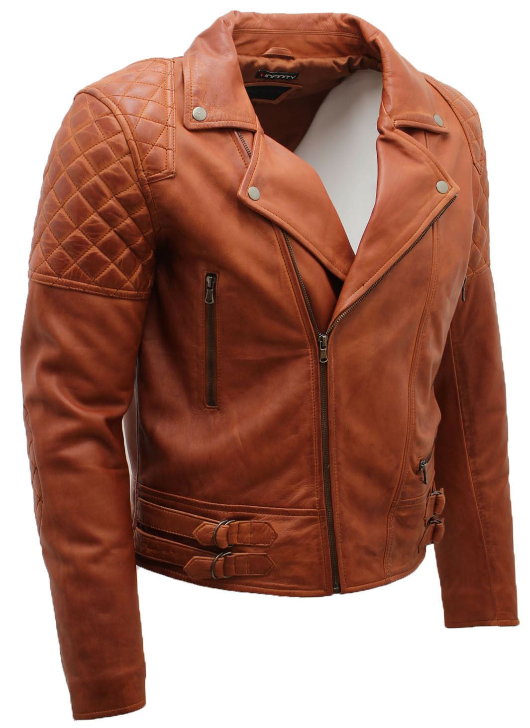 Mens Quilted Leather Biker Jacket-Bordeaux