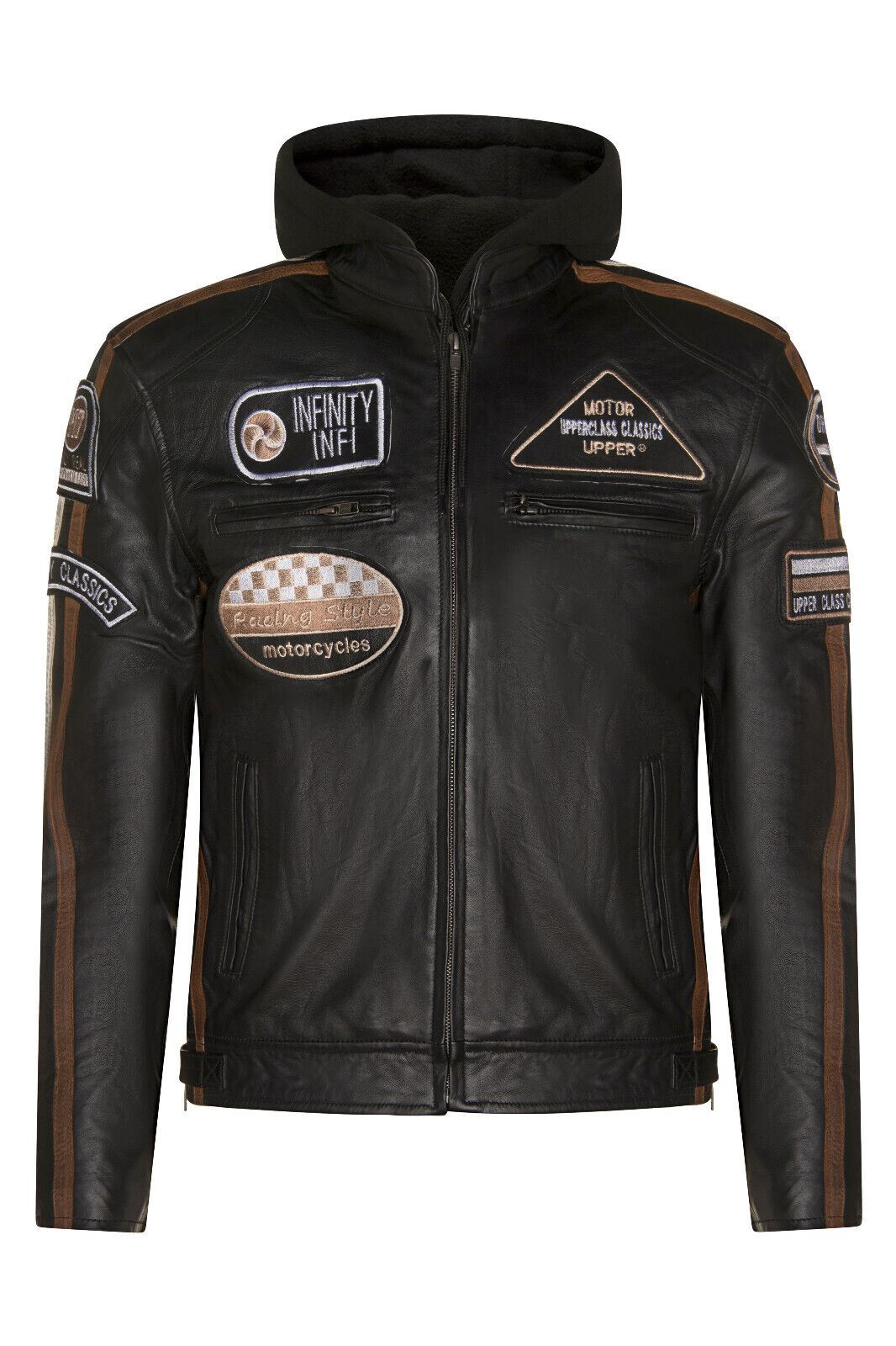 Mens Racing Hooded Leather Biker Jacket-Detroit
