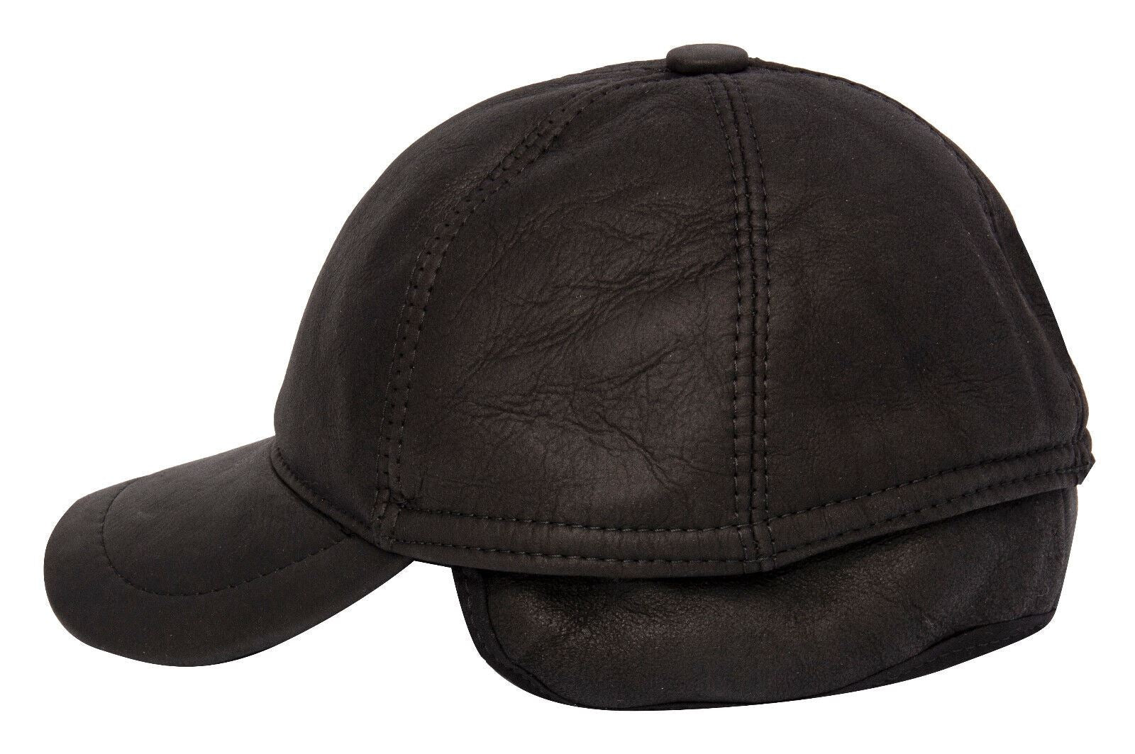 Mens Real Sheepskin Baseball Cap Black Leather Shearling Snapback Winter Hat