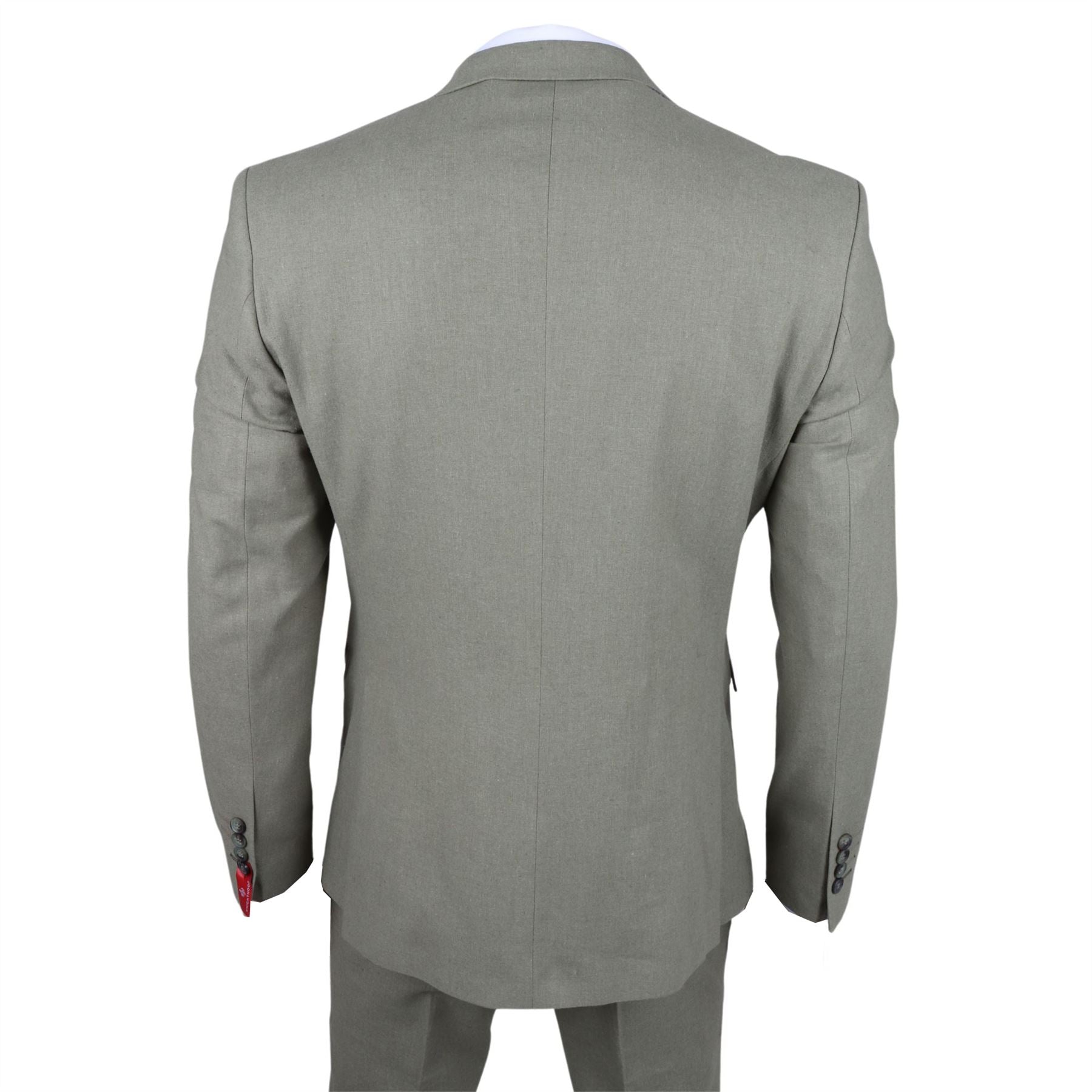 Turn heads at any event with this elegant 3-piece suit in a refreshing sage green tone. Perfect for weddings, garden parties, and summer occasions, this suit combines refined style with breathable comfort. Crafted from a premium blend of 80% cotton and 20% linen, it offers a lightweight, airy feel ideal for warm weather. The tailored fit strikes the perfect balance between slim and regular, offering a clean silhouette without compromising on ease of movement.