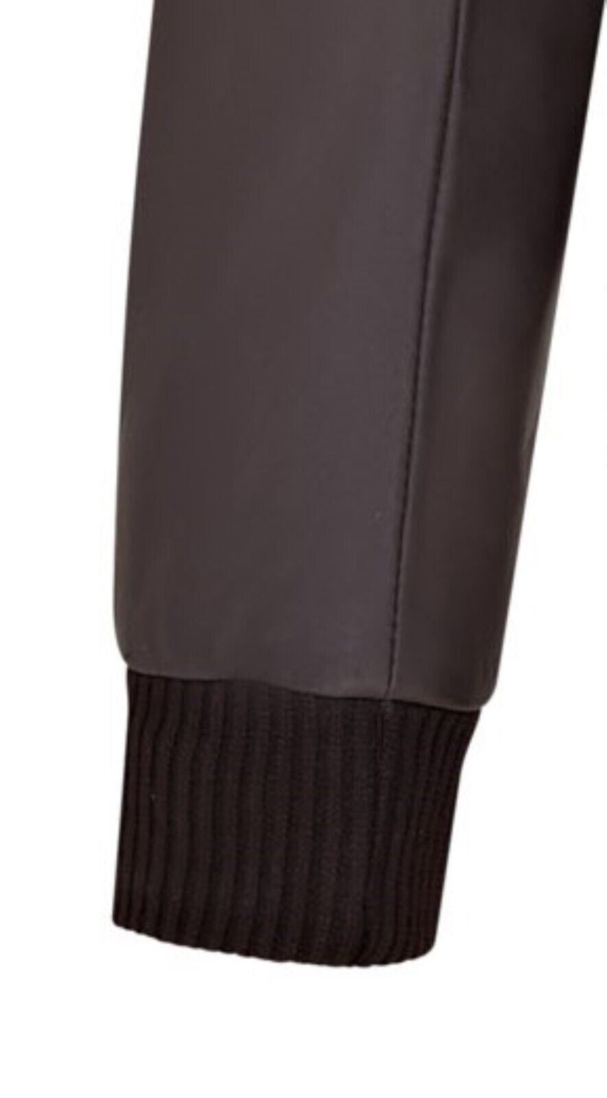 Introducing the Men's Varsity Leather Bomber Jacket, a refined take on the classic MA-1 flight jacket. Crafted from 100% soft lamb nappa, this jacket offers exceptional durability and a supple drape. The exposed zip front features a wide, quilt stitch zip stand, complemented by a rib knit collar, cuffs, and hem for added warmth and a sleek silhouette. With four pockets—two at the waist and two inside, including a secure zipped pocket—this fully lined jacket combines style and functionality seamlessly.