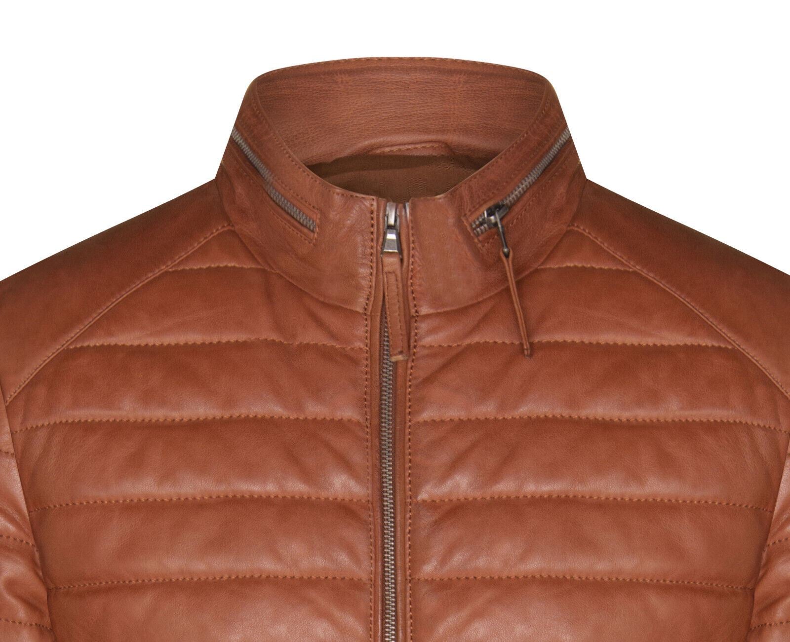 Mens Tan Quilted Leather Puffer Jacket - Tallinn