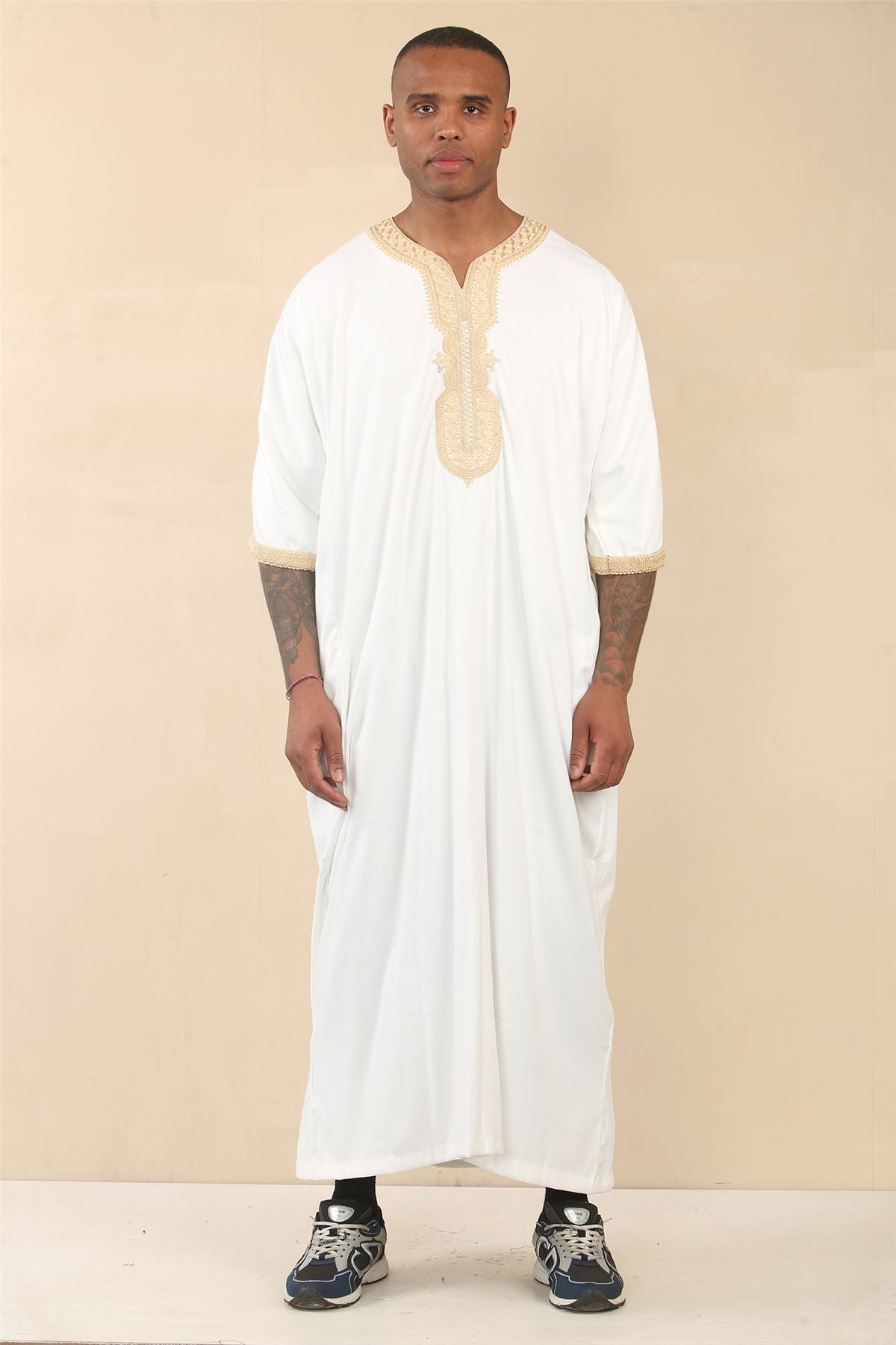 Celebrate tradition and style with this Moroccan thobe, expertly crafted to showcase the rich cultural heritage of Morocco. Featuring intricate embroidery and practical design elements, this thobe combines elegance with functionality, making it the perfect choice for special occasions and gatherings.