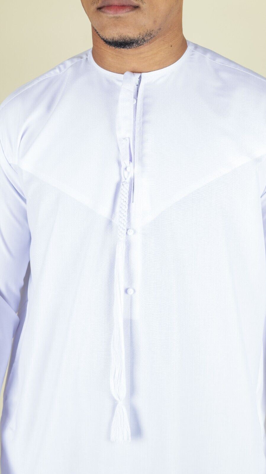 Men's White Thobe Emirati Islamic Jubba Robe Eid Tassel Slim Fit