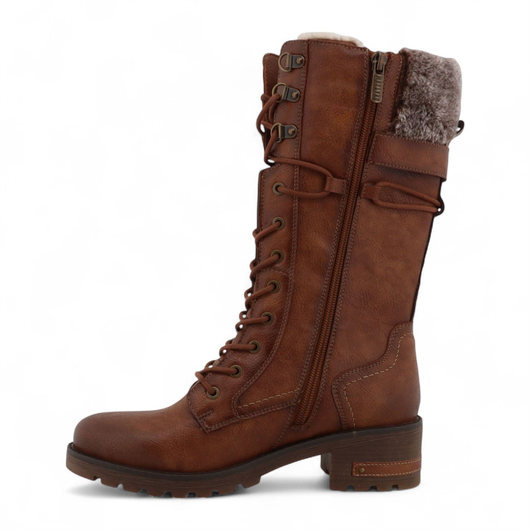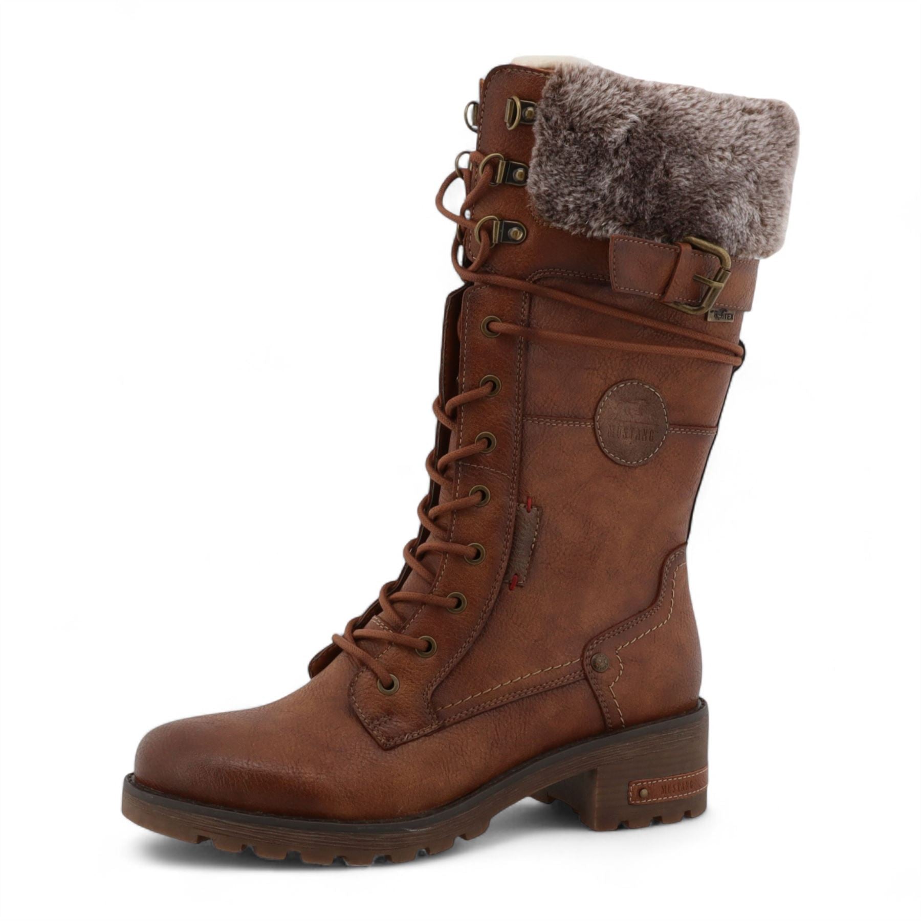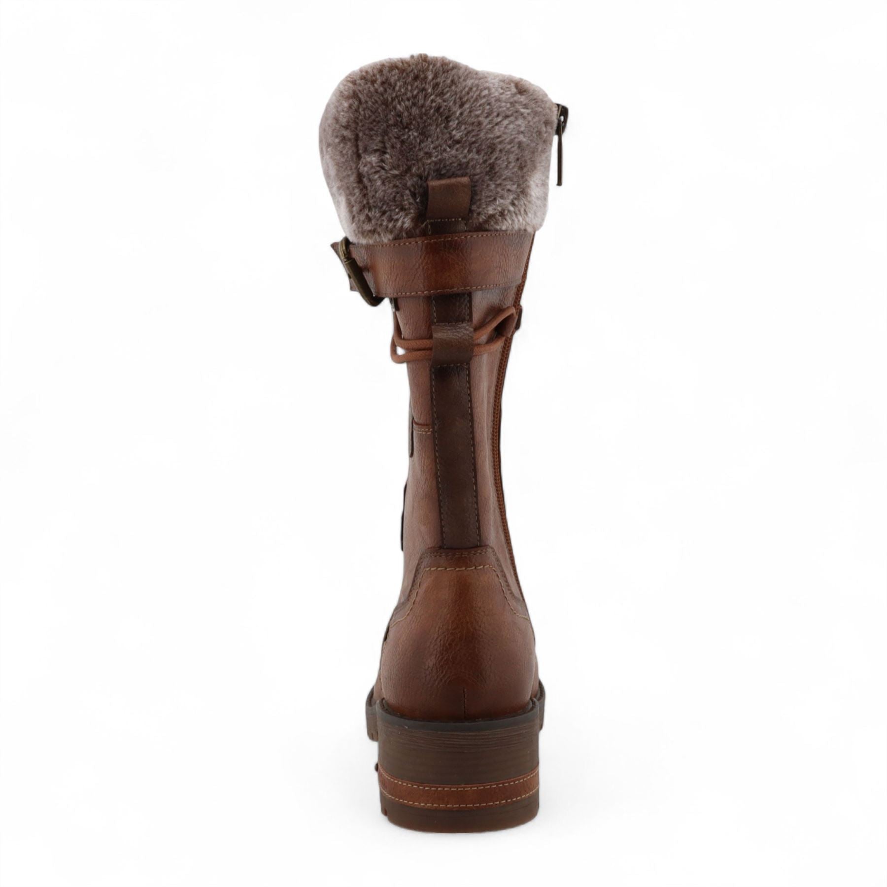 Mustang Women's Brown Mid-Calf Faux Fur Winter Combat Boots