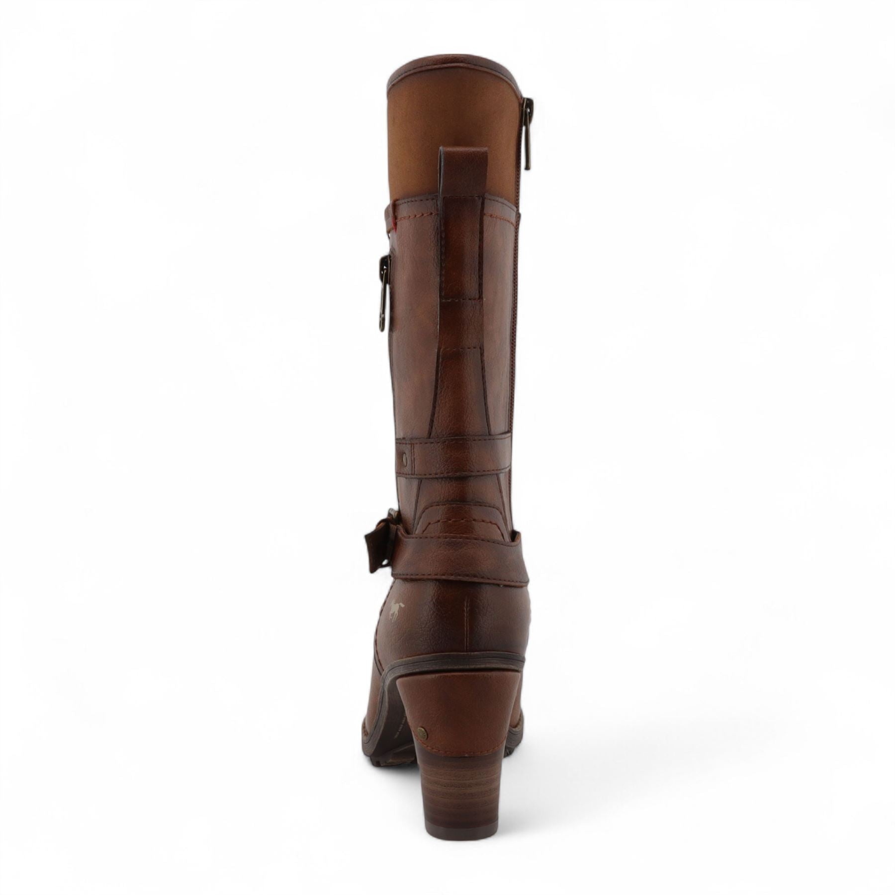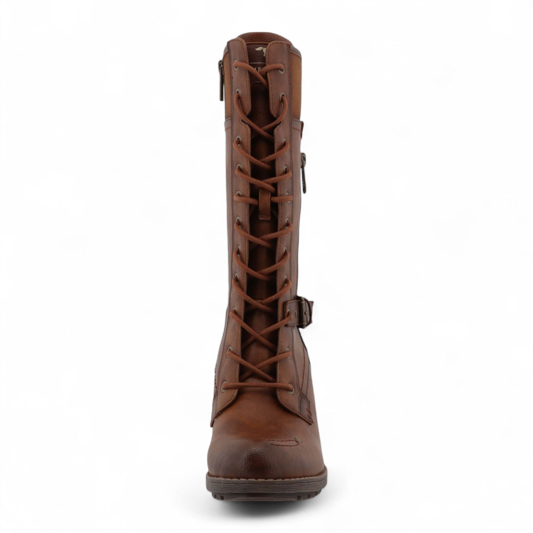 Mustang Women's Brown Mid-Calf Lace Up Heeled Combat Boots