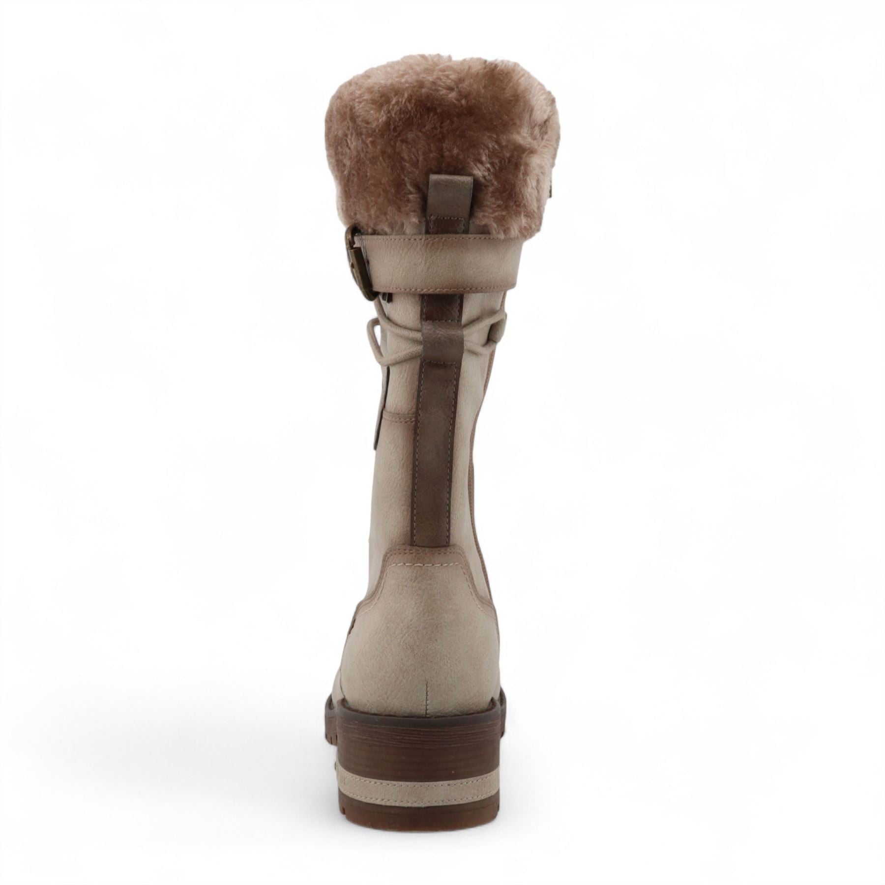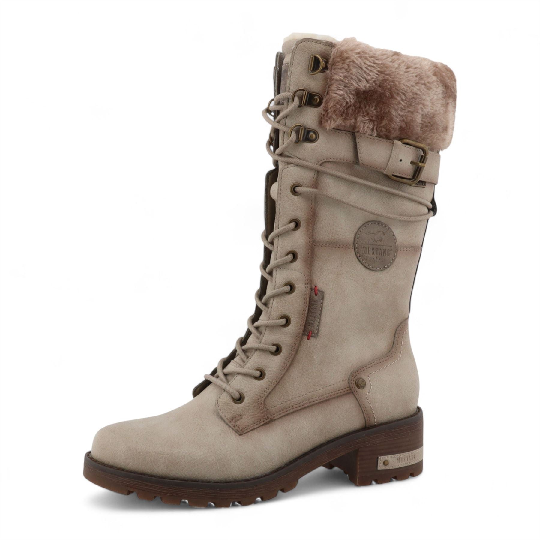 Mustang Women's Off White Mid-Calf Faux Fur Winter Combat Boots
