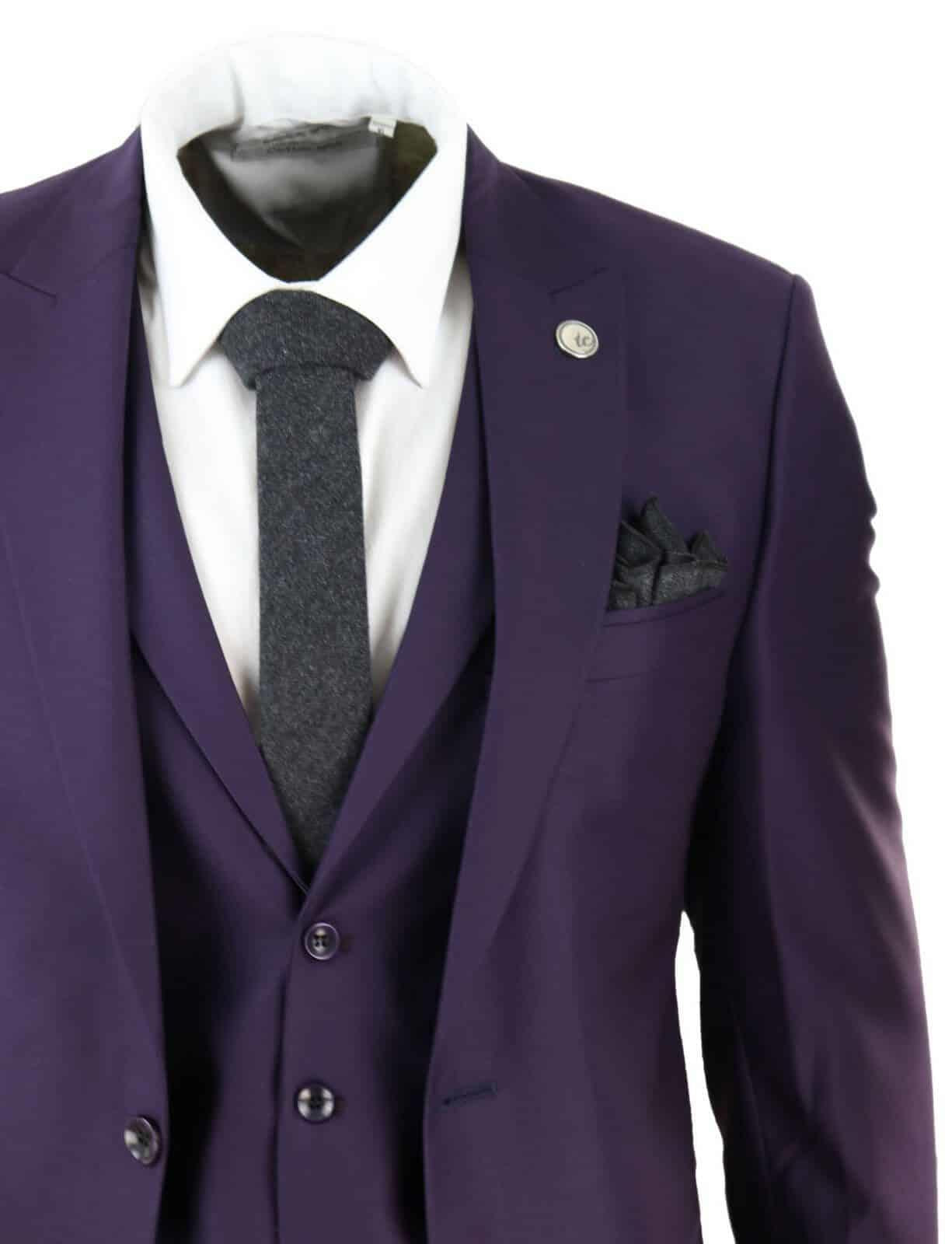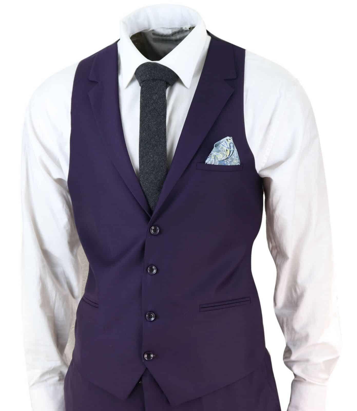 New Mens 3 Piece Suit Plain Purple Classic Tailored Fit Smart Casual 1920s Formal