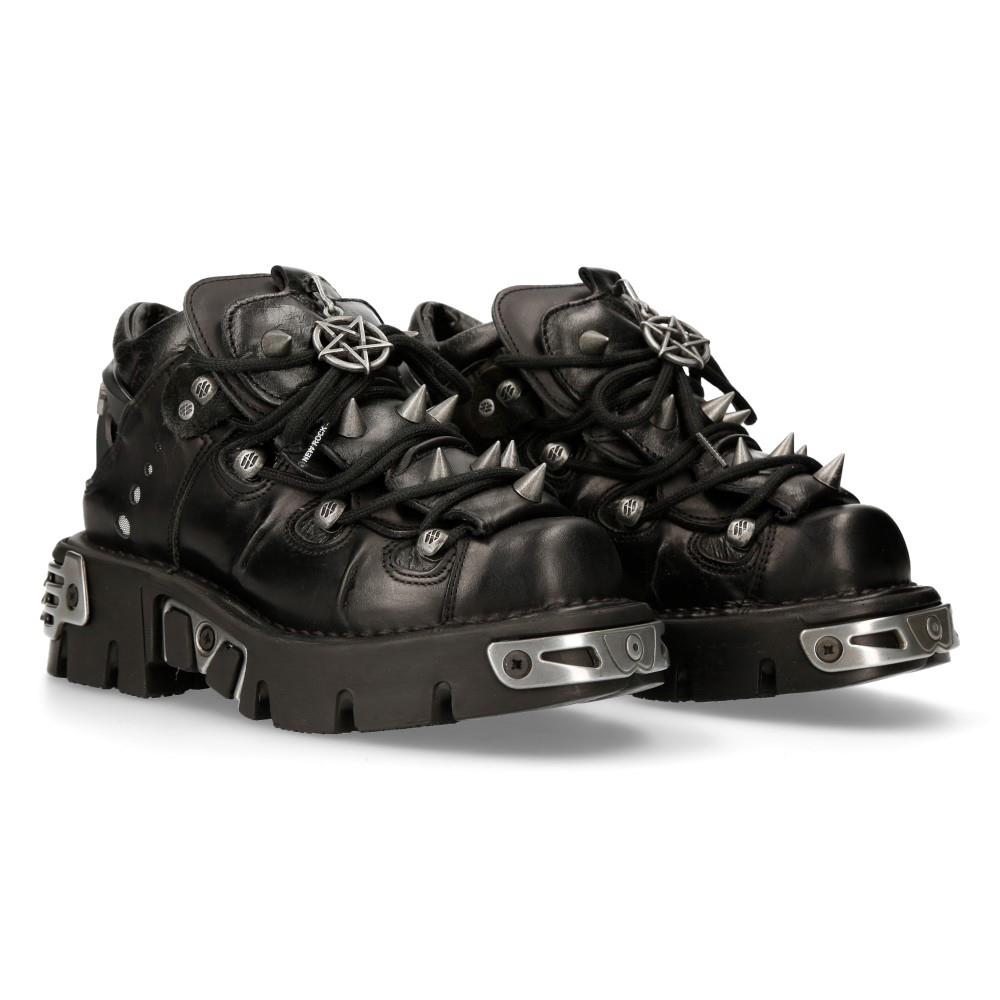 Elevate your style with these iconic New Rock leather ankle boots, a testament to the brand's international acclaim for quality and distinctive design.