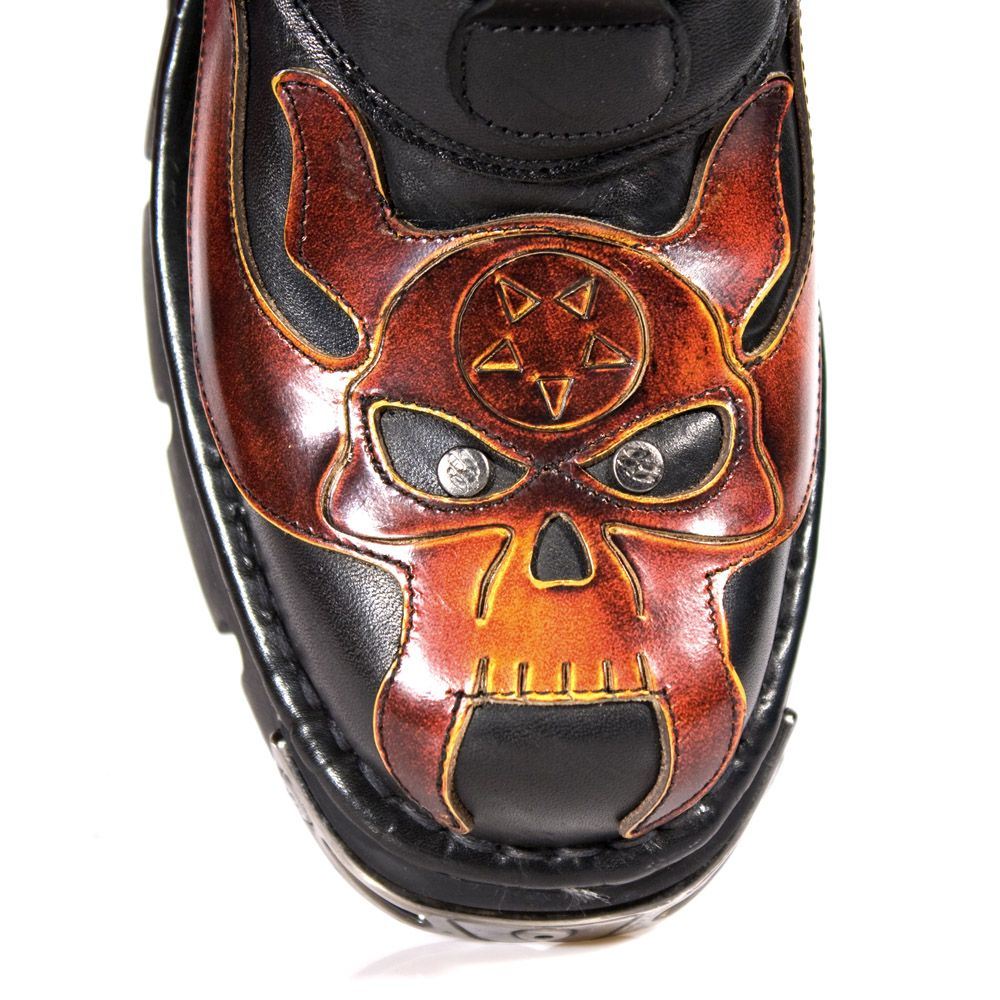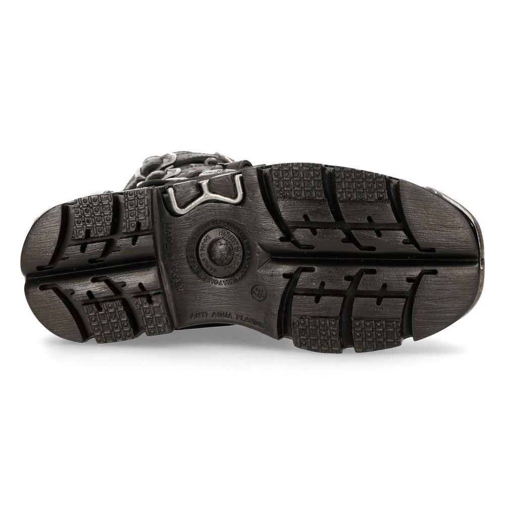 Metallic Motif: Metallic accents, including metal buckles, metallic inserts in the soles, and a shiny New Rock logo, add an edgy and eye-catching motif to these boots.