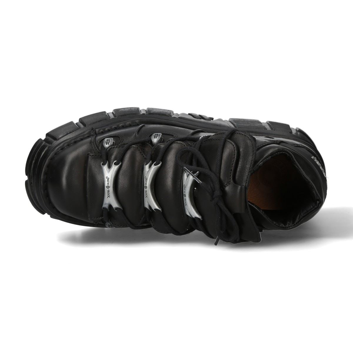 The New Rock M-106-C178 ankle boots from the Metallic Collection embody gothic and punk rebellion with a bold, high-platform design. Made from premium black cow leather with a pigskin interior, they offer both durability and comfort. Featuring an 11 cm heel and 8 cm platform, these boots provide an elevated stance with a commanding presence. The lace-up closure enhances their classic rock aesthetic, making them an essential piece for those who embrace alternative fashion.