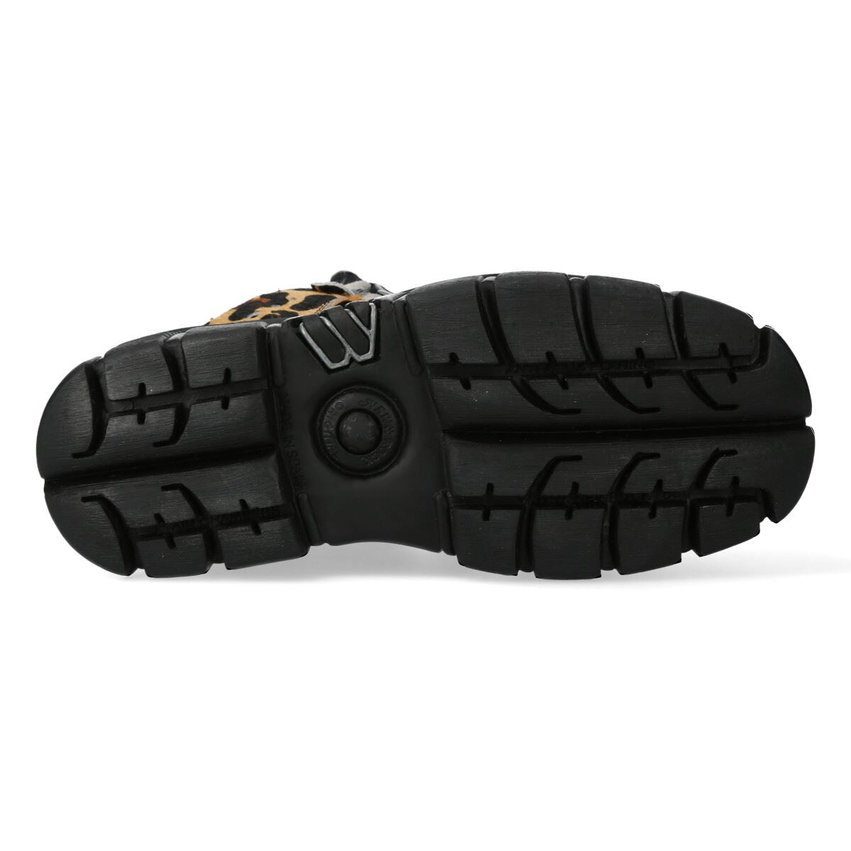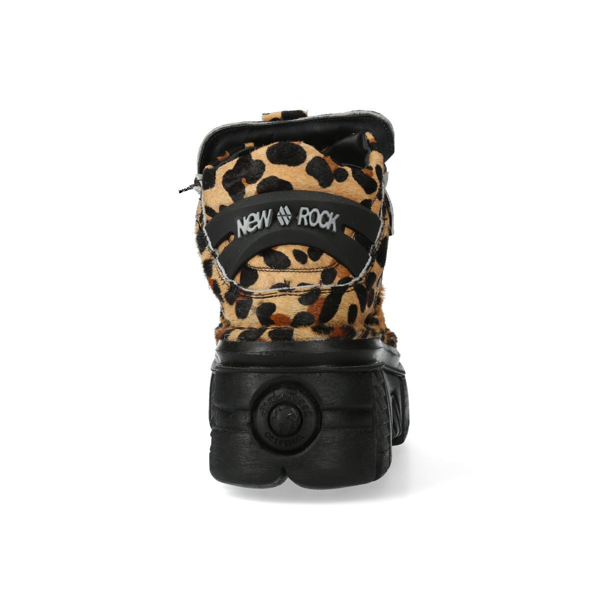The M-106-C192 from New Rock’s Classic Collection combines a bold urban heavy rock aesthetic with premium craftsmanship. These unisex ankle boots feature a striking brown leapord-print cow leather upper, metal lace hooks, and the brand’s iconic PU-ULTRA platform sole for superior durability and an elevated look.