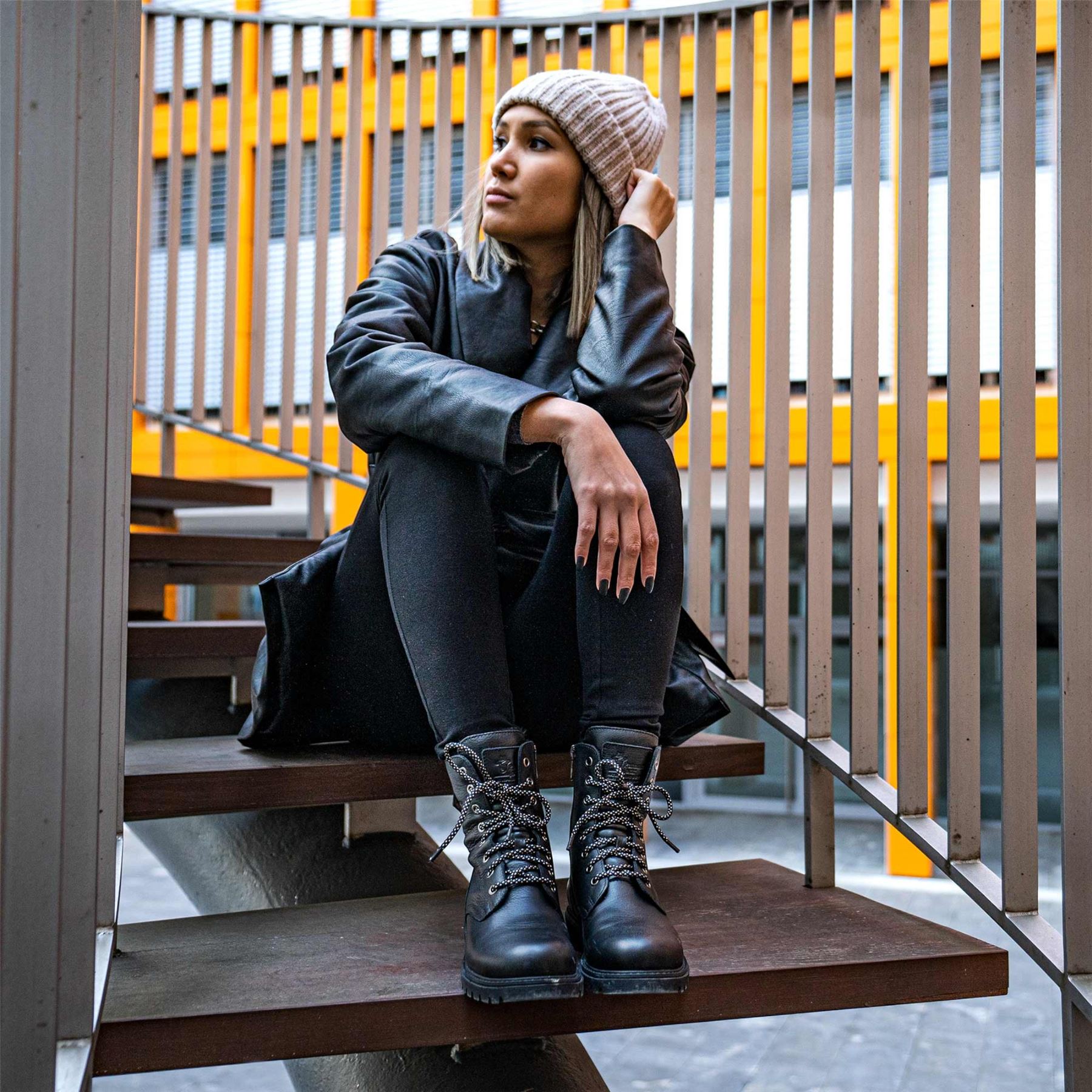 Panama Jack Women's Frisia B1 Black Waterproof Leather Combat Boots