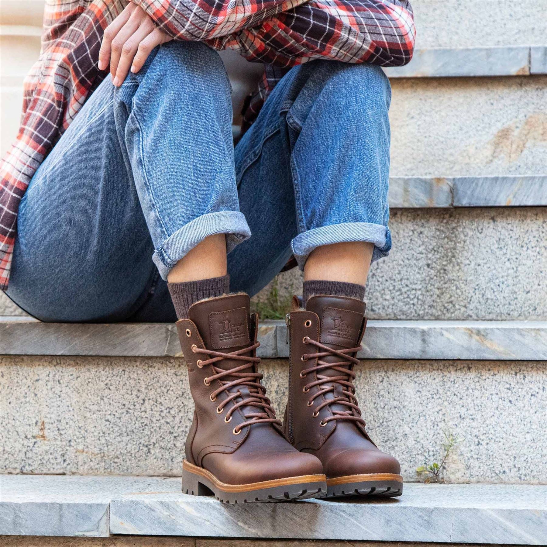 Panama Jack Women's Frisia B10 Bark Waterproof Leather Combat Boots