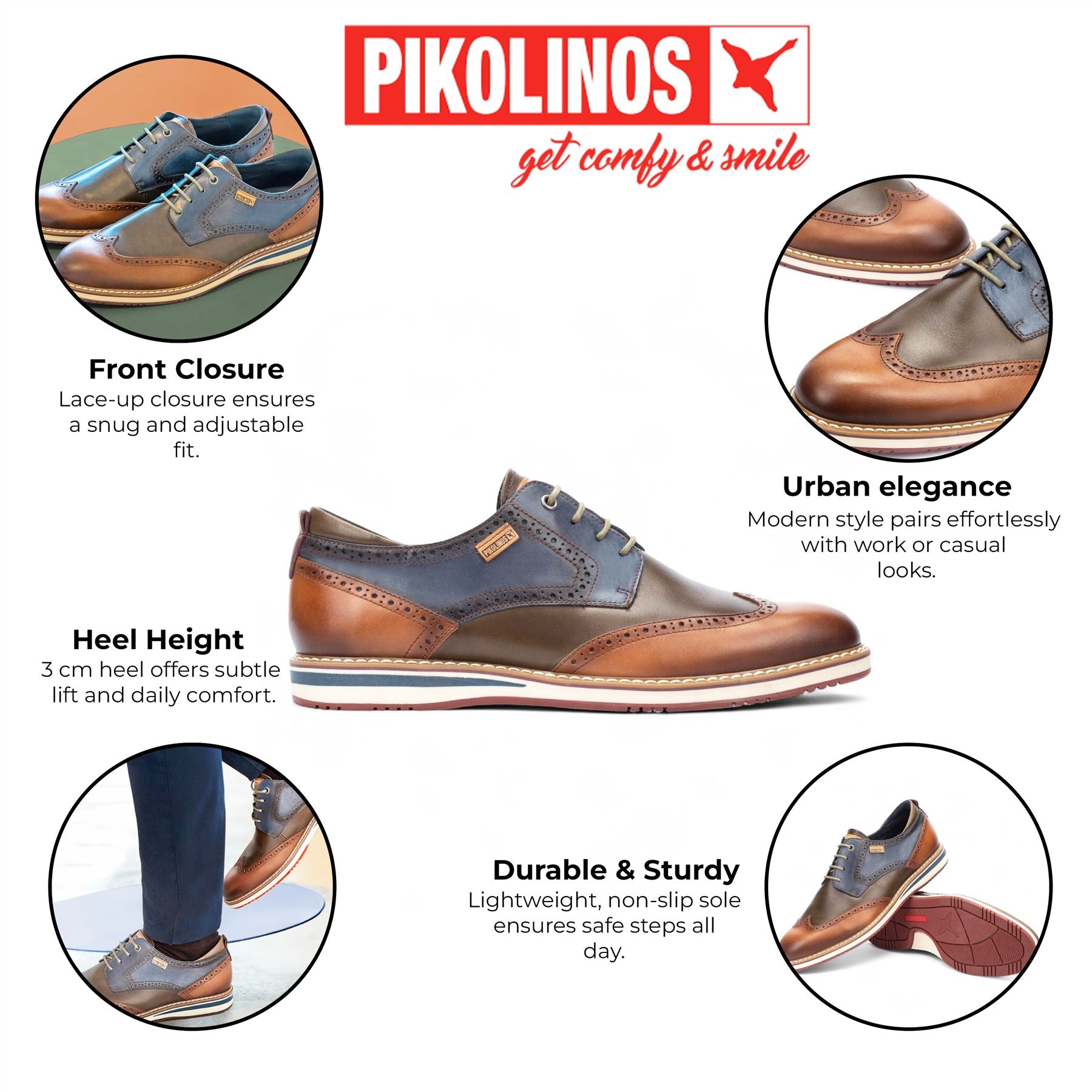 Pikolinos Men’s Brandy Brown Leather Brogue Lace-Up Oxford Shoes - Avila