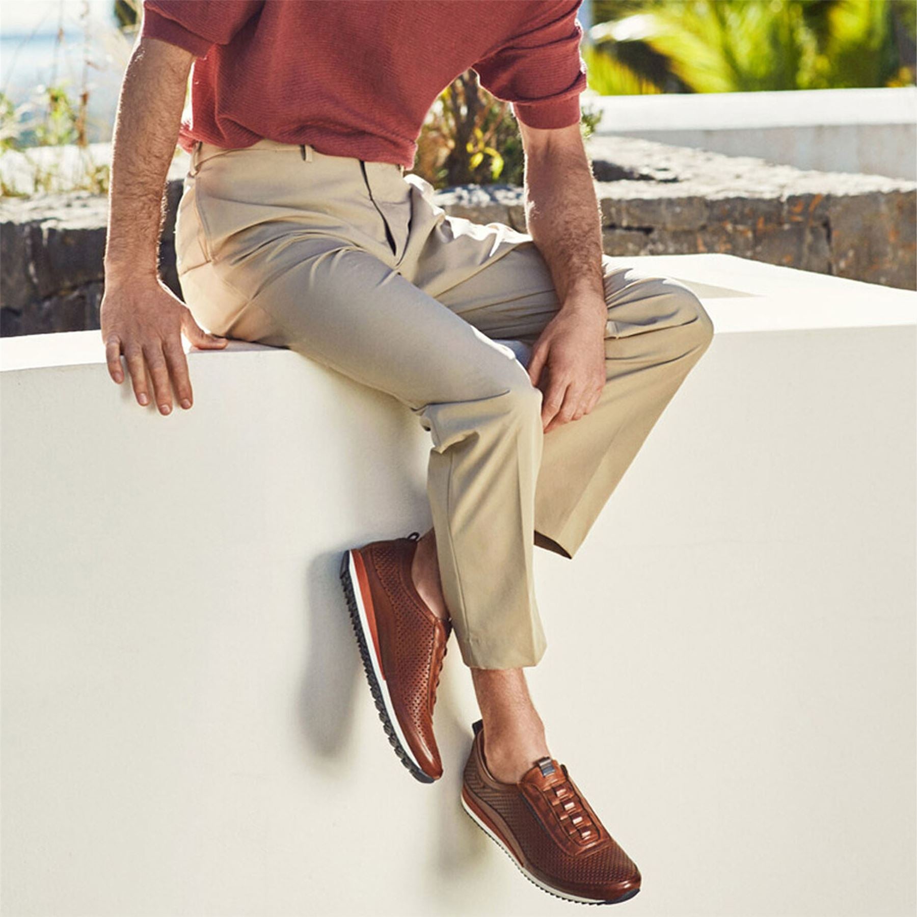 Pikolinos Men's Brown Leather Elastic Slip-on Sneaker Trainers Shoes - Liverpool