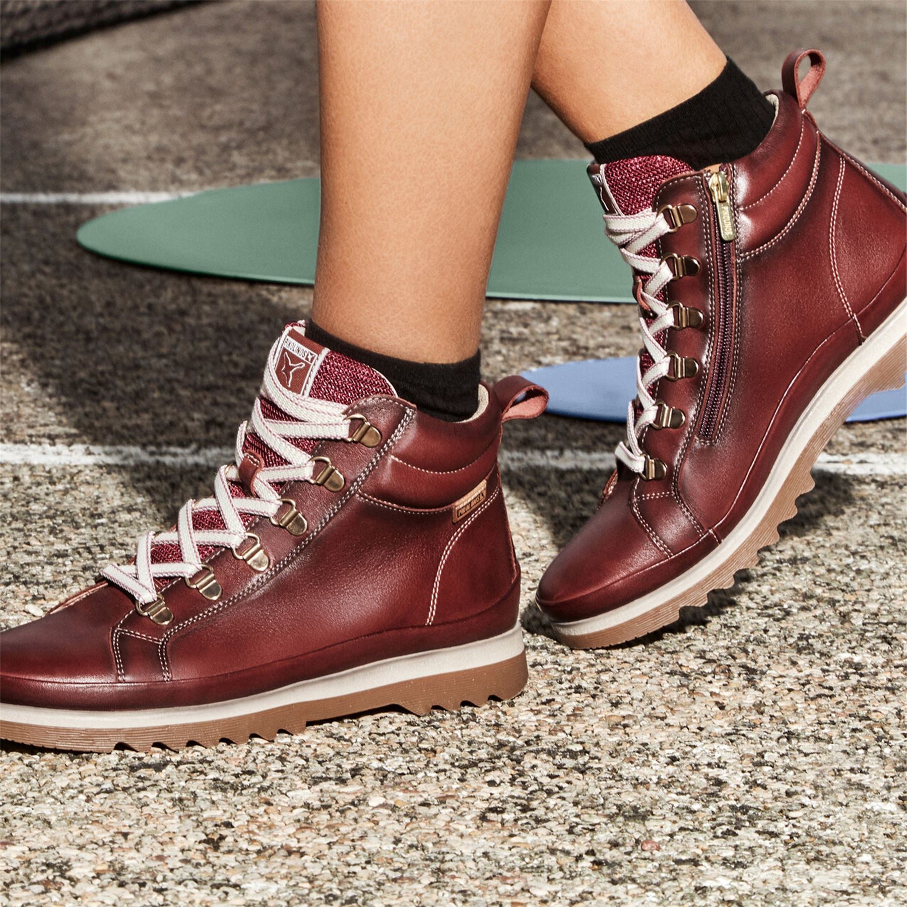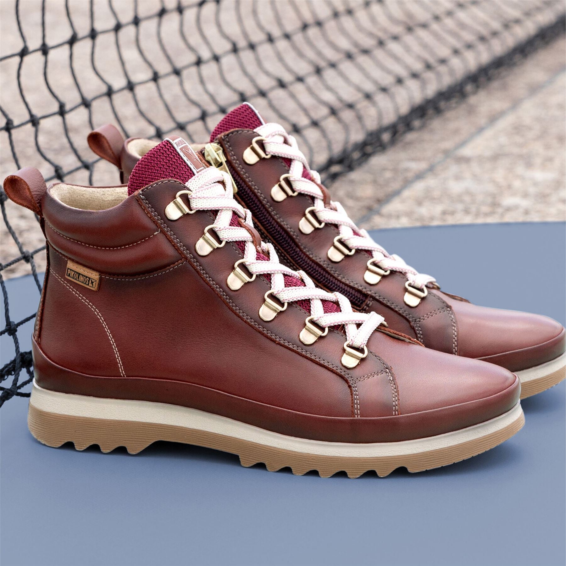 Pikolinos Women’s Arcilla Red Leather Ankle Trainers Boots - Vigo