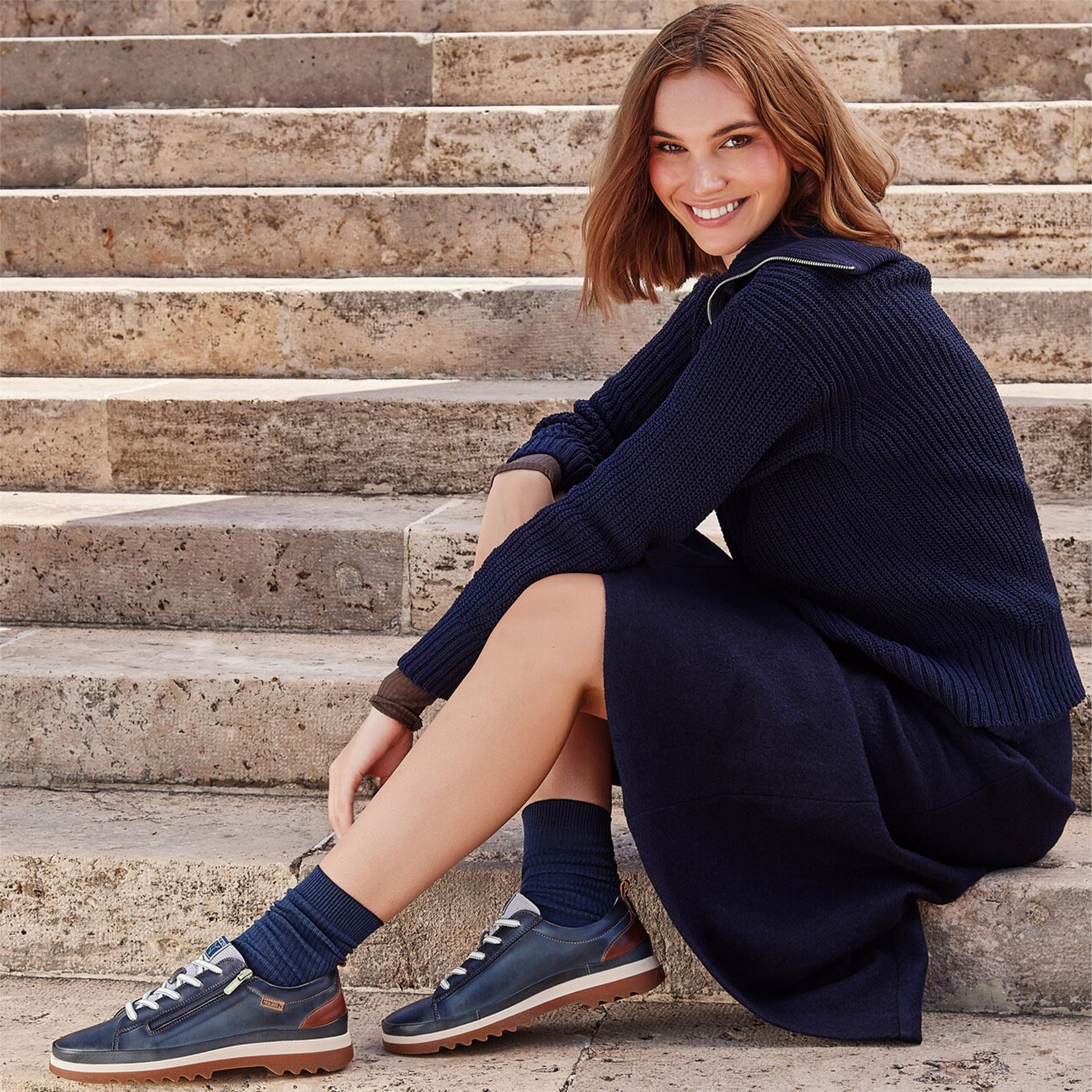 Pikolinos Women’s Ocean Blue Leather Laces & Zipper Trainers - Vigo