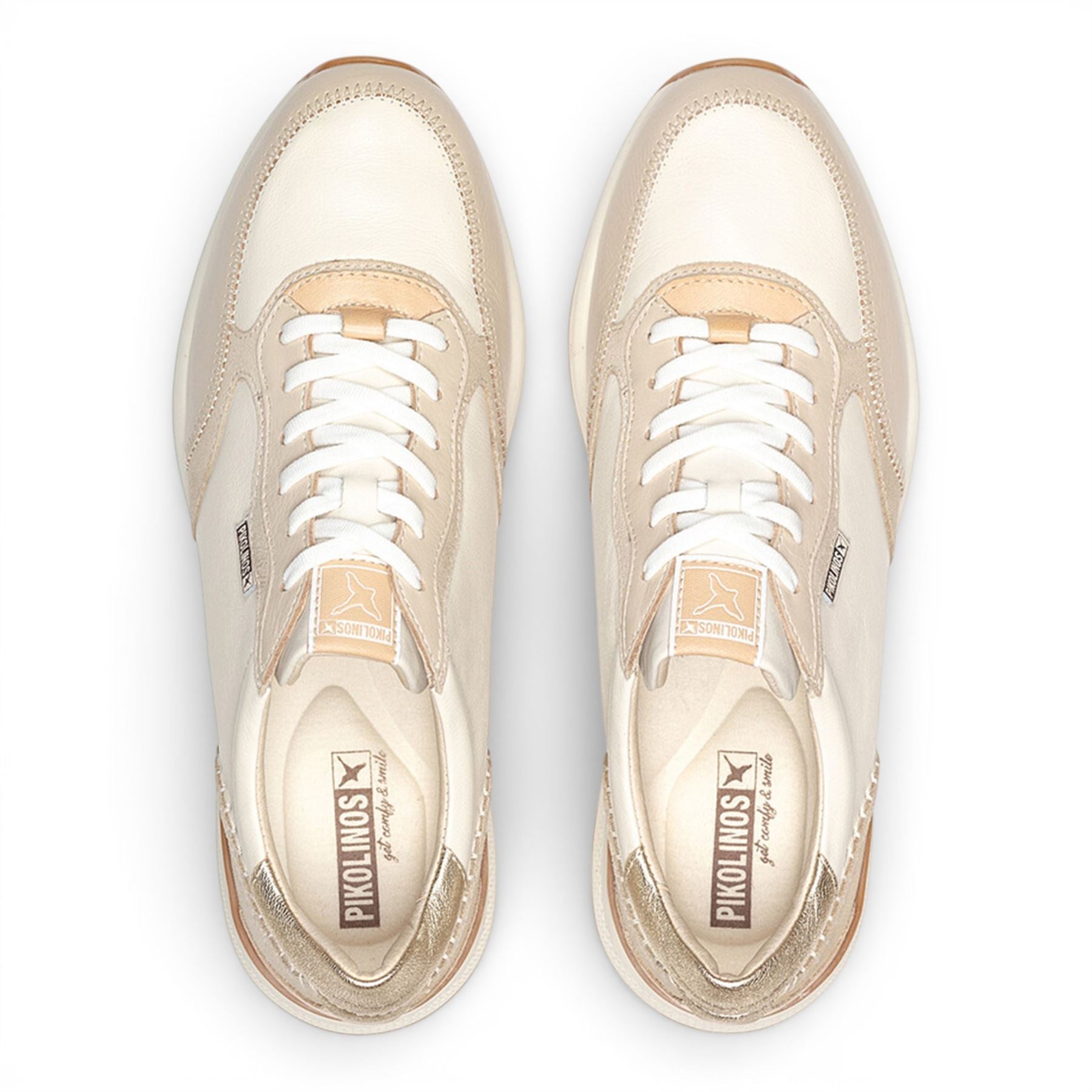 Pikolinos Women's Beige Leather Lace Up Sneaker Trainers Shoes - Arrecife